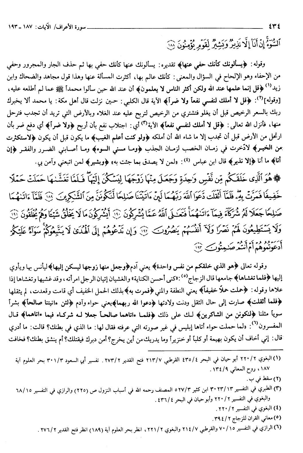 {هُوَ الَّذِي خَلَقَكُمْ مِنْ نَفْسٍ وَاحِدَةٍ وَجَعَلَ مِنْهَا زَوْجَهَا لِيَسْكُنَ إِلَيْهَا فَلَمَّا تَغَشَّاهَا حَمَلَتْ حَمْلا خَفِيفًا فَمَرَّتْ بِهِ فَلَمَّا أَثْقَلَتْ دَعَوَا اللَّهَ رَبَّهُمَا لَئِنْ آتَيْتَنَا صَالِحًا لَنَكُونَنَّ مِنَ الشَّاكِرِينَ {189} فَلَمَّا آتَاهُمَا صَالِحًا جَعَلا لَهُ شُرَكَاءَ فِيمَا آتَاهُمَا فَتَعَالَى اللَّهُ عَمَّا يُشْرِكُونَ {190} أَيُشْرِكُونَ مَا لا يَخْلُقُ شَيْئًا وَهُمْ يُخْلَقُونَ {191} وَلا يَسْتَطِيعُونَ لَهُمْ نَصْرًا وَلا أَنْفُسَهُمْ يَنْصُرُونَ {192} وَإِنْ تَدْعُوهُمْ إِلَى الْهُدَى لا يَتَّبِعُوكُمْ سَوَاءٌ عَلَيْكُمْ أَدَعَوْتُمُوهُمْ أَمْ أَنْتُمْ صَامِتُونَ {193} } [الأعراف: 189-193] وقوله تعالى: {هُوَ الَّذِي خَلَقَكُمْ مِنْ نَفْسٍ وَاحِدَةٍ} [الأعراف: 189] يعني آدم، {وَجَعَلَ مِنْهَا زَوْجَهَا لِيَسْكُنَ إِلَيْهَا} [الأعراف: 189] ليأنس بها ويأوي إليها، فلما تغشاها جامعها، قال الزجاج: كنى أحسن الكناية.