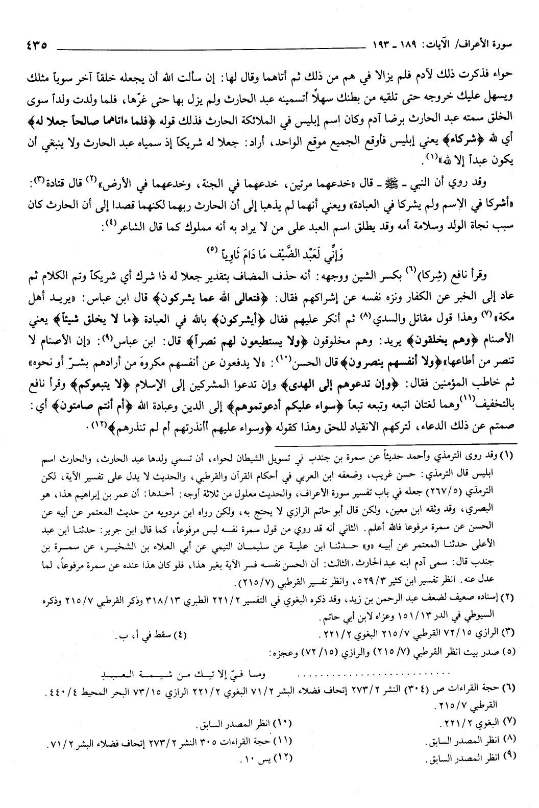حواء فذكرت ذلك لآدم، فلم يزالا في هم من ذلك ثم أتاهما، وقال لها: إن سألت الله أن يجعله خلقا آخر سويا مثلك، ويسهل عليك خروجه حتى تلقيه من بطنك سهلا أتسمينه: عبد الحارث، ولم يزل بها حتى غرها، فلما ولدت ولدا سوى الخلق سمته: عبد الحارث، برضا آدم وكان اسم إبليس في الملائكة الحارث، فذلك قوله: {فَلَمَّا آتَاهُمَا صَالِحًا جَعَلا لَهُ} [الأعراف: 190] أي: لله شركاء يعني: إبليس، فأوقع الجميع موقع الواحد، أراد: جعلا له شريكا إذ سمياه عبد الحارث، ولا ينبغي أن يكون عبدا إلا لله.