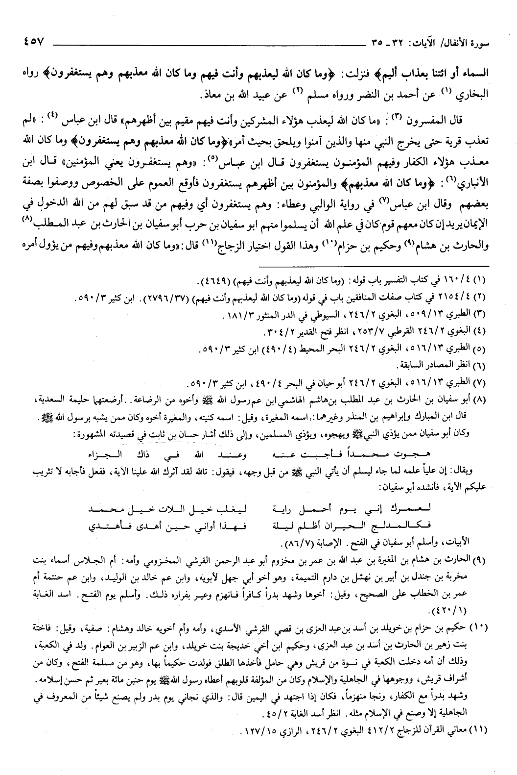 {وَمَا كَانَ اللَّهُ مُعَذِّبَهُمْ وَهُمْ يَسْتَغْفِرُونَ} [الأنفال: 33] وما كان الله معذب هؤلاء الكفار وفيهم المؤمنون يستغفرون، قال ابن عباس: وهم يستغفرون يعني المؤمنين.