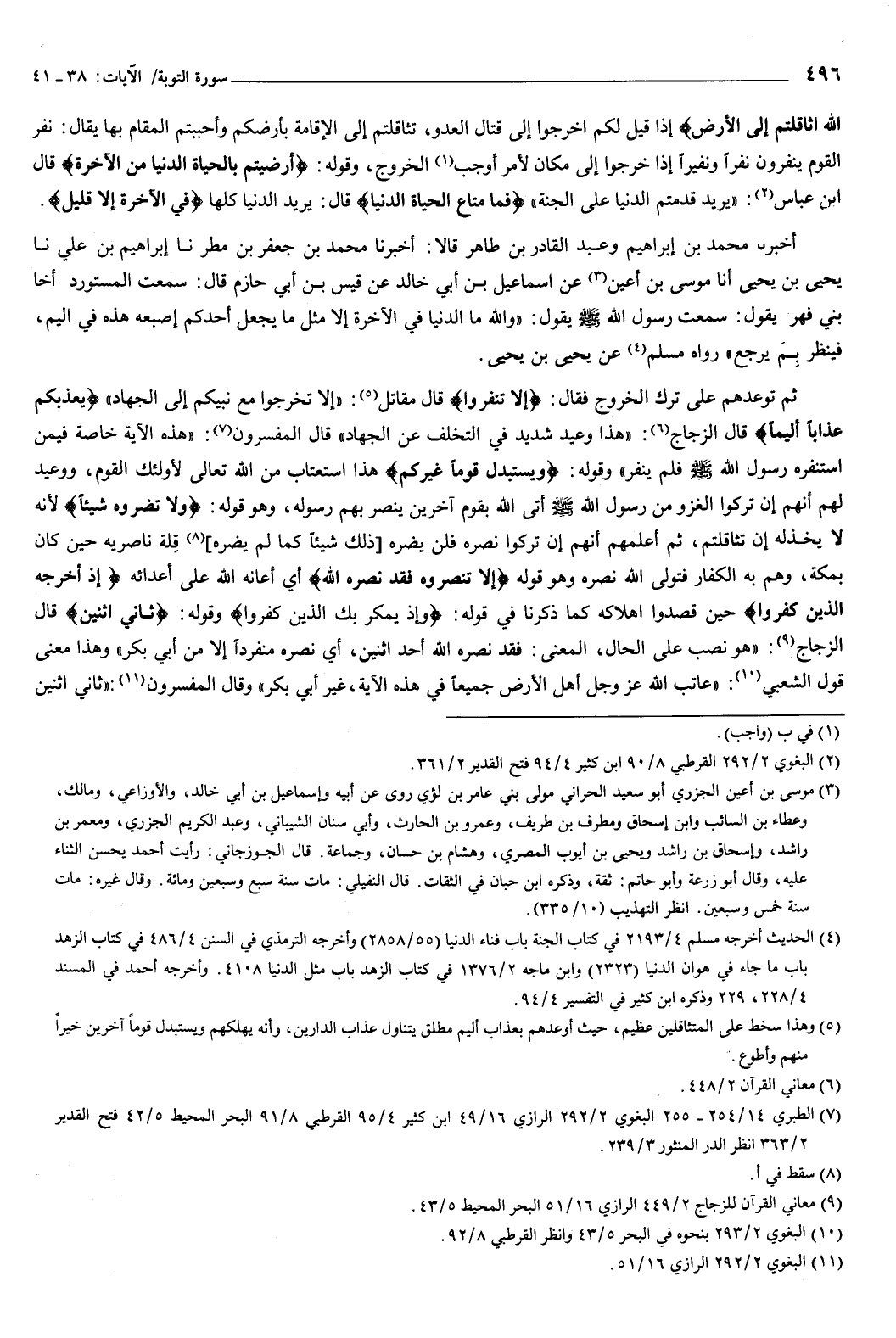 اللَّهِ اثَّاقَلْتُمْ إِلَى الأَرْضِ} [التوبة: 38] إذا قيل لكم اخرجوا إلى قتال العدو تثاقلتم إلى الإقامة بأرضكم وأحببتم المقام بها، يقال: نفر القوم ينفرون نفرا ونفيرا.