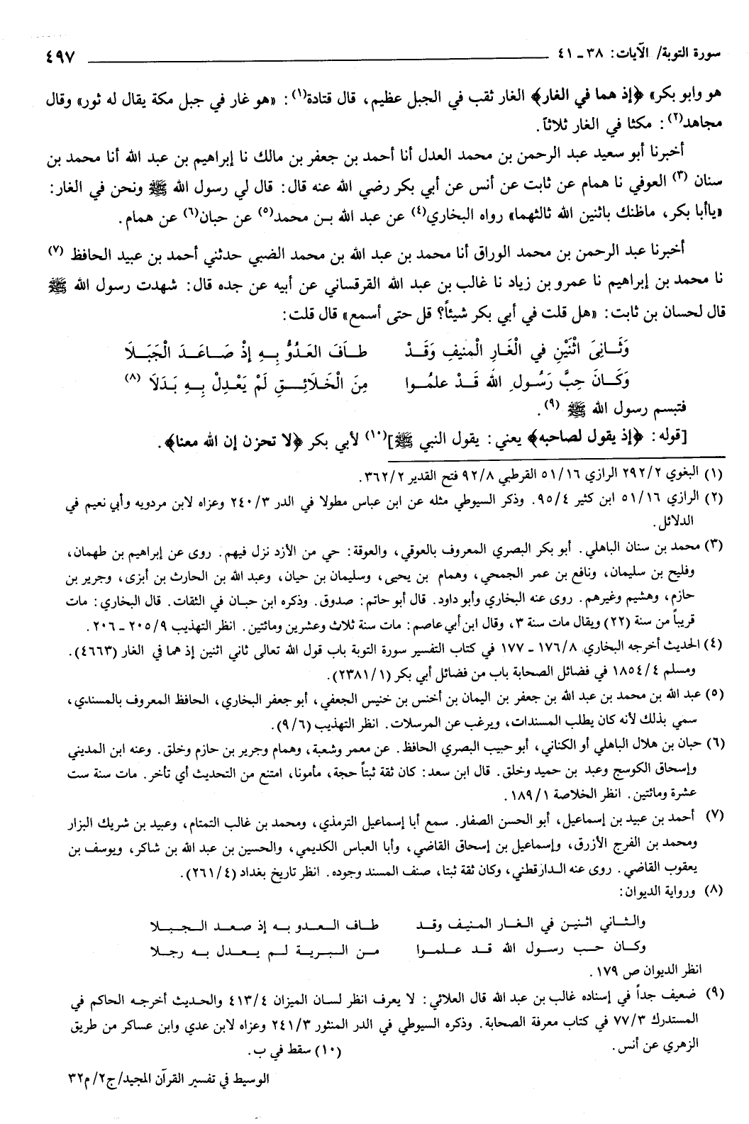 قوله: {إِذْ يَقُولُ لِصَاحِبِهِ} [التوبة: 40] يعني: يقول النبي صَلَّى اللهُ عَلَيْهِ وَسَلَّمَ لأبي بكر: {لا تَحْزَنْ إِنَّ اللَّهَ مَعَنَا} [التوبة: 40] .