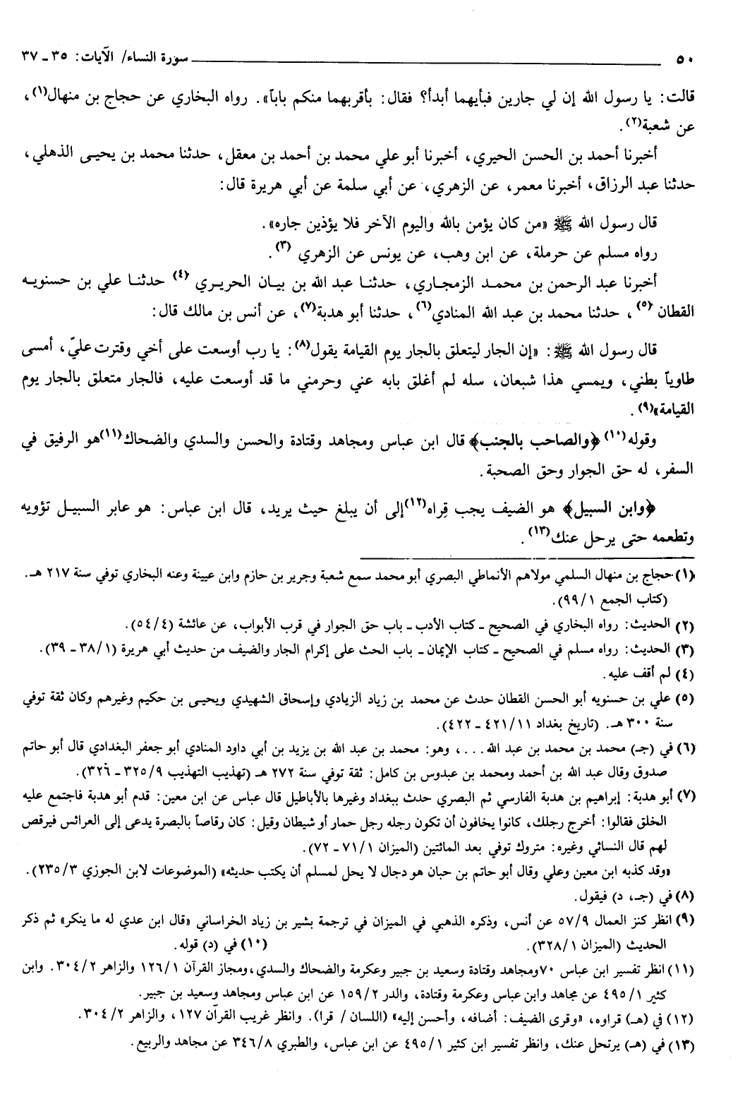 وابن السبيل: هو الضيف يجب قراه إلى أن يبلغ حيث يريد، قال ابن عباس: هو عابر السبيل تئويه، وتطعمه حتى يرحل عنك.