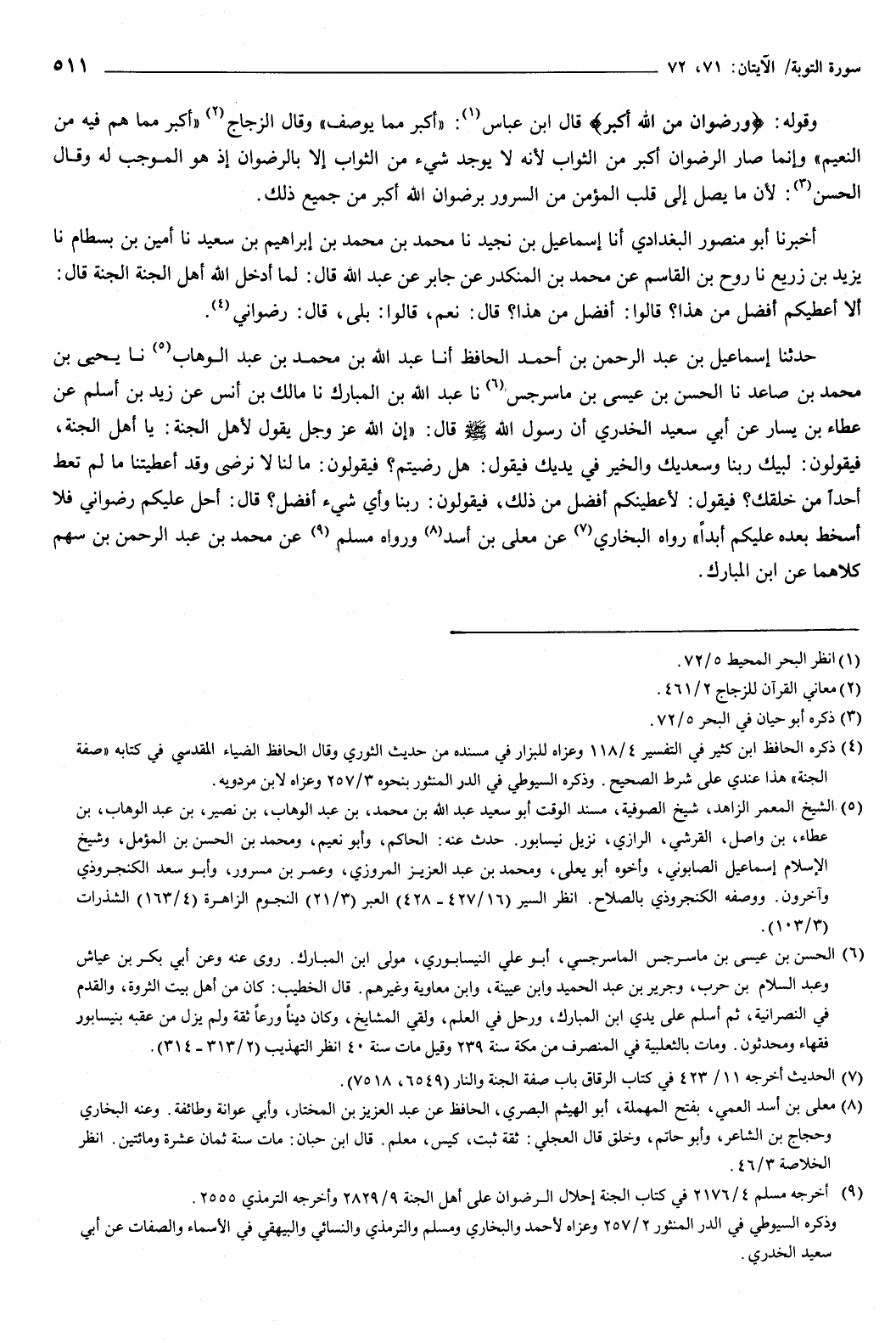 وقوله: {وَرِضْوَانٌ مِنَ اللَّهِ أَكْبَرُ} [التوبة: 72] قال ابن عباس: أكبر مما يوصف.