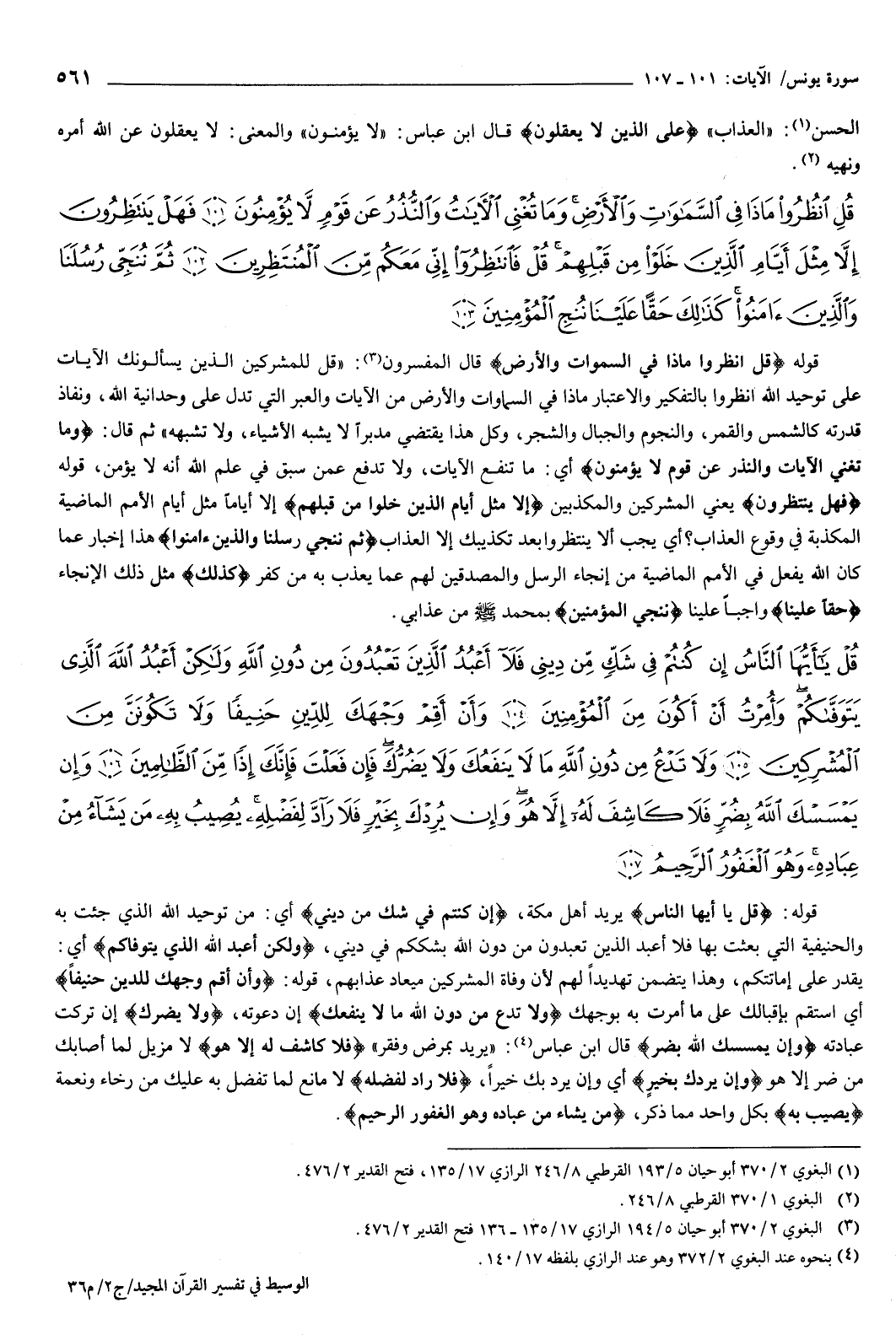 {قُلِ انْظُرُوا مَاذَا فِي السَّمَوَاتِ وَالأَرْضِ وَمَا تُغْنِي الآيَاتُ وَالنُّذُرُ عَنْ قَوْمٍ لا يُؤْمِنُونَ {101} فَهَلْ يَنْتَظِرُونَ إِلا مِثْلَ أَيَّامِ الَّذِينَ خَلَوْا مِنْ قَبْلِهِمْ قُلْ فَانْتَظِرُوا إِنِّي مَعَكُمْ مِنَ الْمُنْتَظِرِينَ {102} ثُمَّ نُنَجِّي رُسُلَنَا وَالَّذِينَ آمَنُوا كَذَلِكَ حَقًّا عَلَيْنَا نُنْجِ الْمُؤْمِنِينَ {103} } [يونس: 101-103] قوله: {قُلِ انْظُرُوا مَاذَا فِي السَّمَوَاتِ وَالأَرْضِ} [يونس: 101] قال المفسرون: قل للمشركين الذين يسألونك الآيات على توحيد الله: انظروا بالتفكير والاعتبار ماذا في خلق السموات والأرض من الآيات والعبر التي تدل على وحدانية الله، ونفاذ قدرته كالشمس والقمر والنجوم والجبال والشجر، وكل هذا يقتضي مدبرا لا يشبه الأشياء ولا تشبهه.