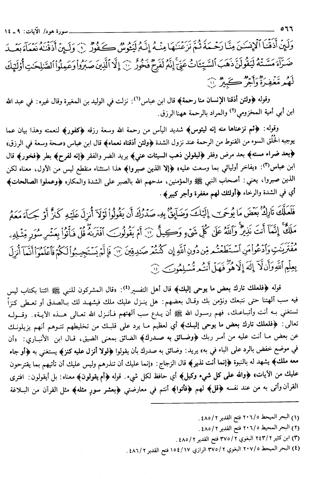 {فَلَعَلَّكَ تَارِكٌ بَعْضَ مَا يُوحَى إِلَيْكَ وَضَائِقٌ بِهِ صَدْرُكَ أَنْ يَقُولُوا لَوْلا أُنْزِلَ عَلَيْهِ كَنْزٌ أَوْ جَاءَ مَعَهُ مَلَكٌ إِنَّمَا أَنْتَ نَذِيرٌ وَاللَّهُ عَلَى كُلِّ شَيْءٍ وَكِيلٌ {12} أَمْ يَقُولُونَ افْتَرَاهُ قُلْ فَأْتُوا بِعَشْرِ سُوَرٍ مِثْلِهِ مُفْتَرَيَاتٍ وَادْعُوا مَنِ اسْتَطَعْتُمْ مِنْ دُونِ اللَّهِ إِنْ كُنْتُمْ صَادِقِينَ {13} فَإِنْ لَمْ يَسْتَجِيبُوا لَكُمْ فَاعْلَمُوا أَنَّمَا أُنْزِلِ بِعِلْمِ اللَّهِ وَأَنْ لا إِلَهَ إِلا هُوَ فَهَلْ أَنْتُمْ مُسْلِمُونَ {14} } [هود: 12-14] قوله: {فَلَعَلَّكَ تَارِكٌ بَعْضَ مَا يُوحَى إِلَيْكَ} [هود: 12] قال أهل التفسير: قال المشركون للنبي صَلَّى اللهُ عَلَيْهِ وَسَلَّمَ: ائتنا بكتاب ليس فيه سب آلهتنا حتى نتبعك ونؤمن بك.