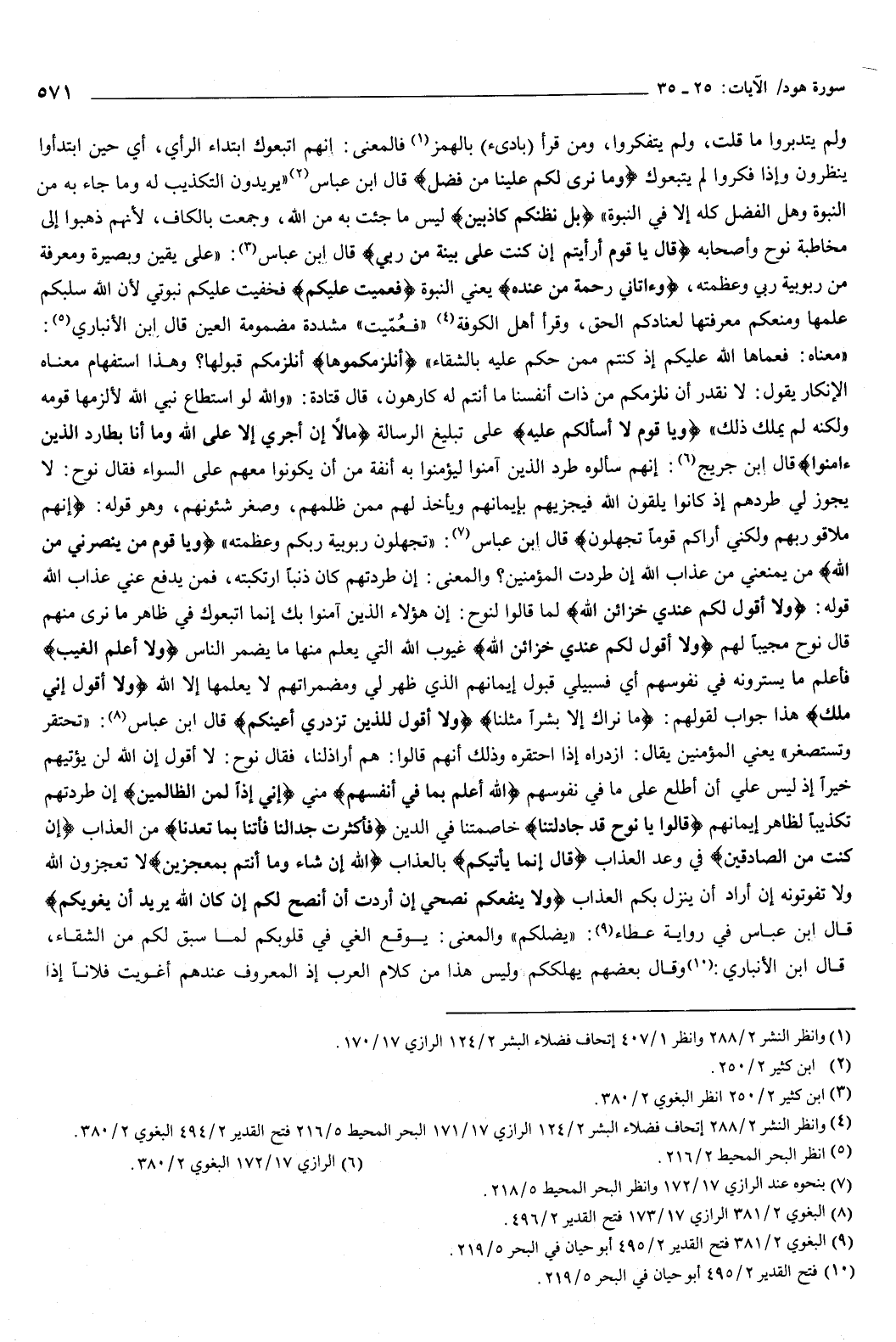 قال نوح مجيبا لهم: {وَلا أَقُولُ لَكُمْ عِنْدِي خَزَائِنُ اللَّهِ} [هود: 31] غيوب الله التي يعلم منها ما يضمر الناس {وَلا أَعْلَمُ الْغَيْبَ} [هود: 31] فأعلم ما يسترونه في نفوسهم، أي: فسبيلي قبول إيمانهم الذي ظهر لي، ومضمراتهم لا يعلمها إلا الله {وَلا أَقُولُ إِنِّي مَلَكٌ} [هود: 31] هذا جواب لقولهم {مَا نَرَاكَ إِلا بَشَرًا مِثْلَنَا} [هود: 27] ، {وَلا أَقُولُ لِلَّذِينَ تَزْدَرِي أَعْيُنُكُمْ} [هود: 31] قال ابن عباس: تحتقر وتستصغر.