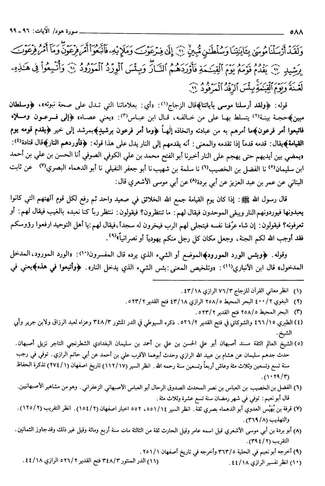 {إِلَى فِرْعَوْنَ وَمَلَئِهِ فَاتَّبَعُوا أَمْرَ فِرْعَوْنَ} [هود: 97] ما أمرهم به من عبادته واتخاذه إلها {وَمَا أَمْرُ فِرْعَوْنَ بِرَشِيدٍ} [هود: 97] بمرشد إلى خير، {يَقْدُمُ قَوْمَهُ يَوْمَ الْقِيَامَةِ} [هود: 98] يقال: قدمه قدما.
