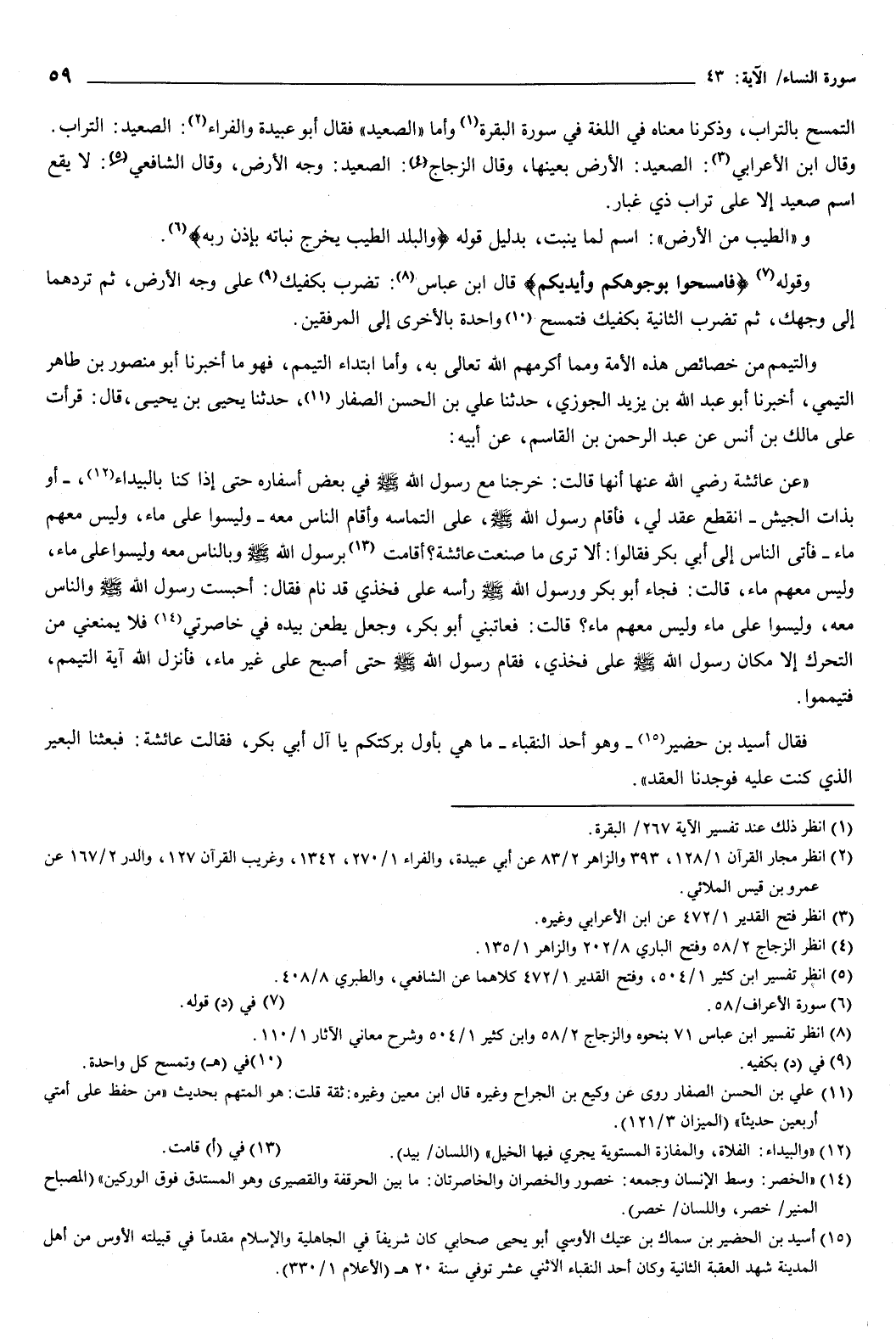 وقوله: {فَامْسَحُوا بِوُجُوهِكُمْ وَأَيْدِيكُمْ} [النساء: 43] قال ابن عباس: تضرب بكفيك على وجه الأرض، ثم تردهما إلى وجهك، ثم تضرب الثانية بكفيك فتمسح واحدة بالأخرى إلى المرفقين.