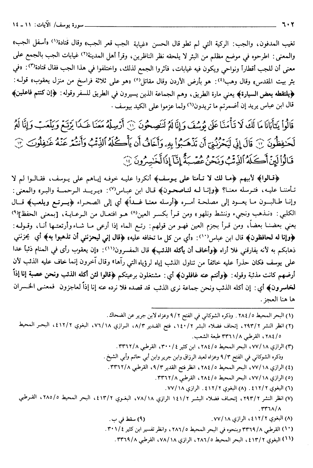وقوله: {وَأَنْتُمْ عَنْهُ غَافِلُونَ} [يوسف: 13] أي: مشتغلون برعيتكم، {قَالُوا لَئِنْ أَكَلَهُ الذِّئْبُ وَنَحْنُ عُصْبَةٌ إِنَّا إِذًا لَخَاسِرُونَ} [يوسف: 14] أي: إن أكله الذئب ونحن جماعة نرى الذئب قد قصده فلا نرده عنه إنا إذا لعاجزون، فمعنى الخسران ههنا: العجز.