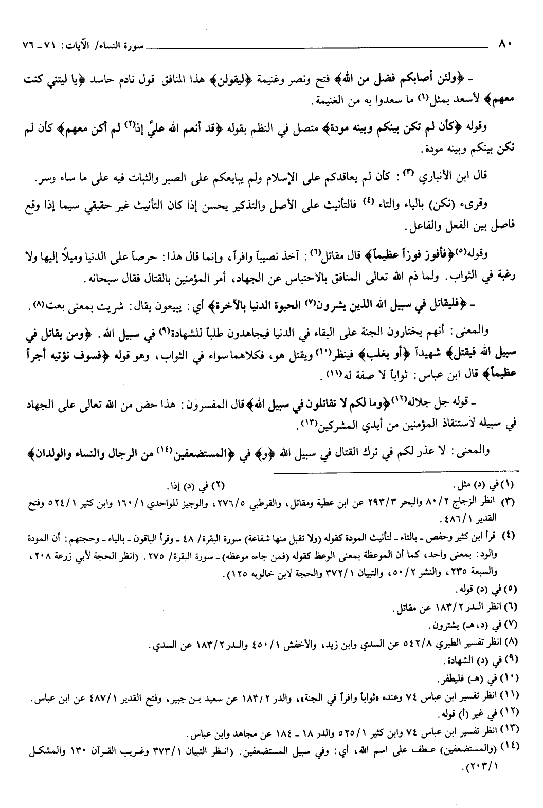 {وَلَئِنْ أَصَابَكُمْ فَضْلٌ مِنَ اللَّهِ} [النساء: 73] فتح ونصر وغنيمة، ليقولن: هذا المنافق قول نادم حاسد: {يَا لَيْتَنِي كُنْتُ مَعَهُمْ} [النساء: 73] لأسعد بمثل ما سعدوا به من الغنيمة.