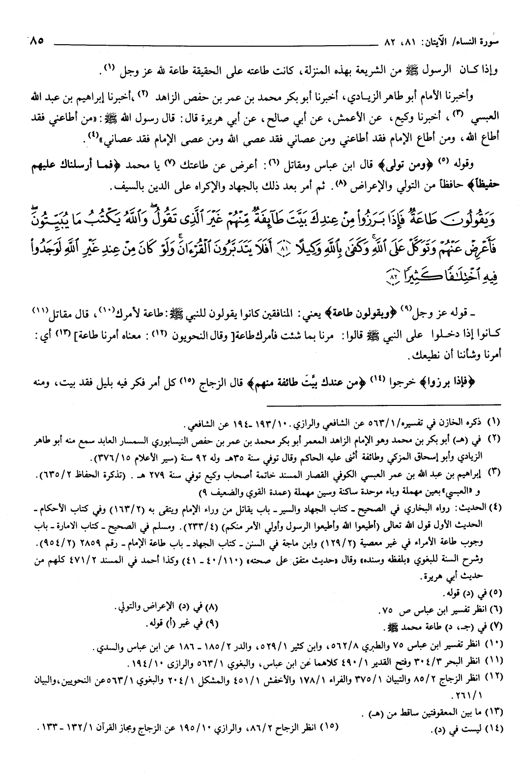 {وَيَقُولُونَ طَاعَةٌ فَإِذَا بَرَزُوا مِنْ عِنْدِكَ بَيَّتَ طَائِفَةٌ مِنْهُمْ غَيْرَ الَّذِي تَقُولُ وَاللَّهُ يَكْتُبُ مَا يُبَيِّتُونَ فَأَعْرِضْ عَنْهُمْ وَتَوَكَّلْ عَلَى اللَّهِ وَكَفَى بِاللَّهِ وَكِيلا {81} أَفَلا يَتَدَبَّرُونَ الْقُرْءَانَ وَلَوْ كَانَ مِنْ عِنْدِ غَيْرِ اللَّهِ لَوَجَدُوا فِيهِ اخْتِلافًا كَثِيرًا {82} } [النساء: 81-82] قوله عز وجل: ويقولون طاعة يعني: المنافقين كانوا يقولون للنبي صَلَّى اللهُ عَلَيْهِ وَسَلَّمَ: طاعة لأمرك.