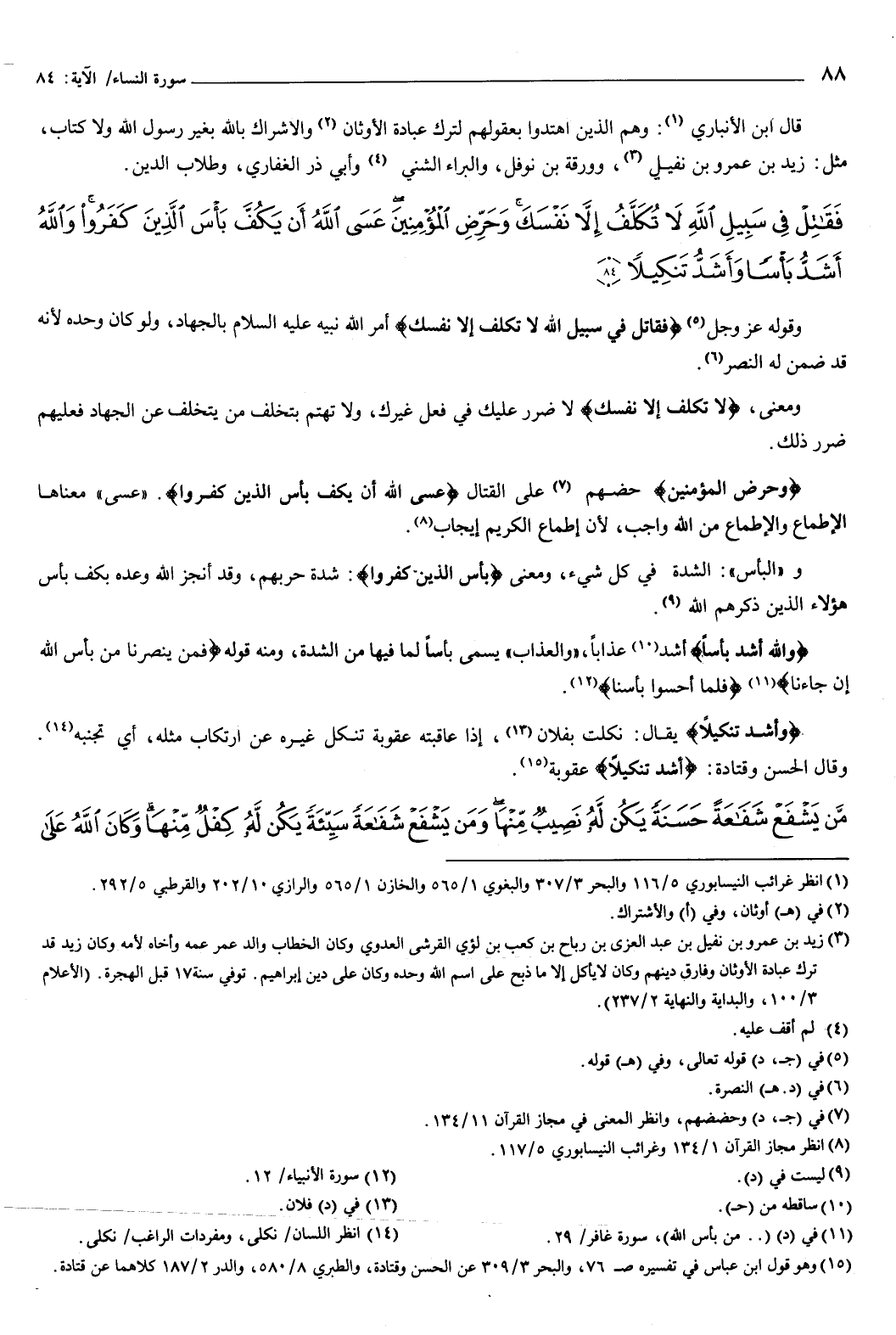 {فَقَاتِلْ فِي سَبِيلِ اللَّهِ لا تُكَلَّفُ إِلا نَفْسَكَ وَحَرِّضِ الْمُؤْمِنِينَ عَسَى اللَّهُ أَنْ يَكُفَّ بَأْسَ الَّذِينَ كَفَرُوا وَاللَّهُ أَشَدُّ بَأْسًا وَأَشَدُّ تَنْكِيلا} [النساء: 84] وقوله عز وجل: {فَقَاتِلْ فِي سَبِيلِ اللَّهِ لا تُكَلَّفُ إِلا نَفْسَكَ} [النساء: 84] أمر الله نبيه عليه السلام بالجهاد، ولو كان وحده لأنه قد ضمن له النصر.