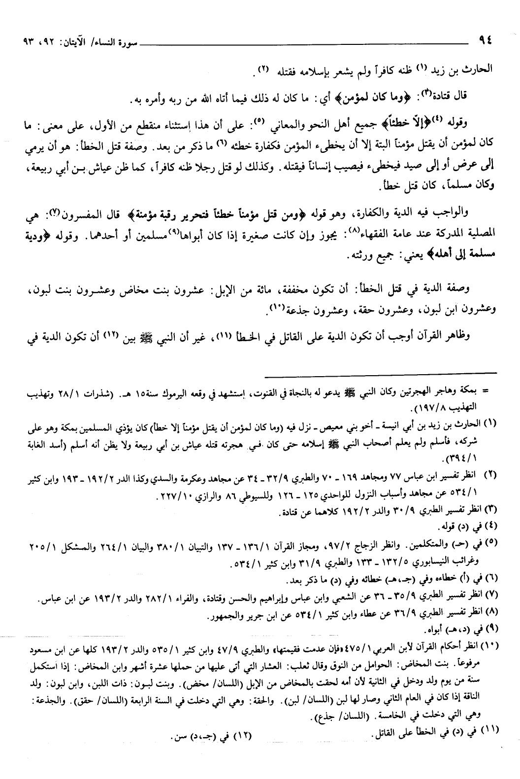 وظاهر القرآن أوجب أن تكون الدية على القاتل في الخطأ، غير أن النبي صَلَّى اللهُ عَلَيْهِ وَسَلَّمَ بين أن تكون الدية في