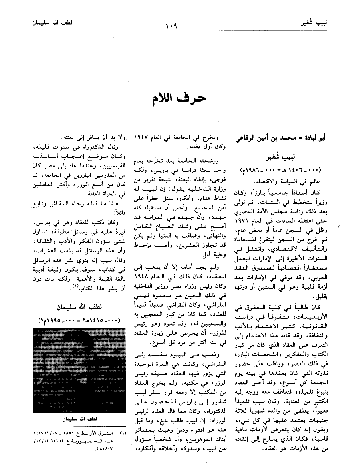 (¬1) الشرق الأوسط ع 2855 - 18/ 1/ 1407 هـ، الجمهورية ع 12264 (1/ 12/ 1407 هـ).