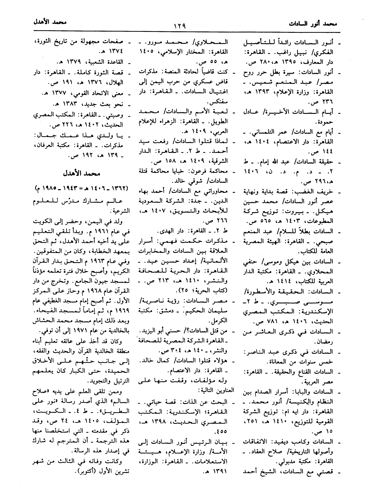 - لماذا قتلوا السادات/ رفعت سيد أحمد.- ط 2.- القاهرة: الدار الشرقية، 1409 هـ، 158 ص.