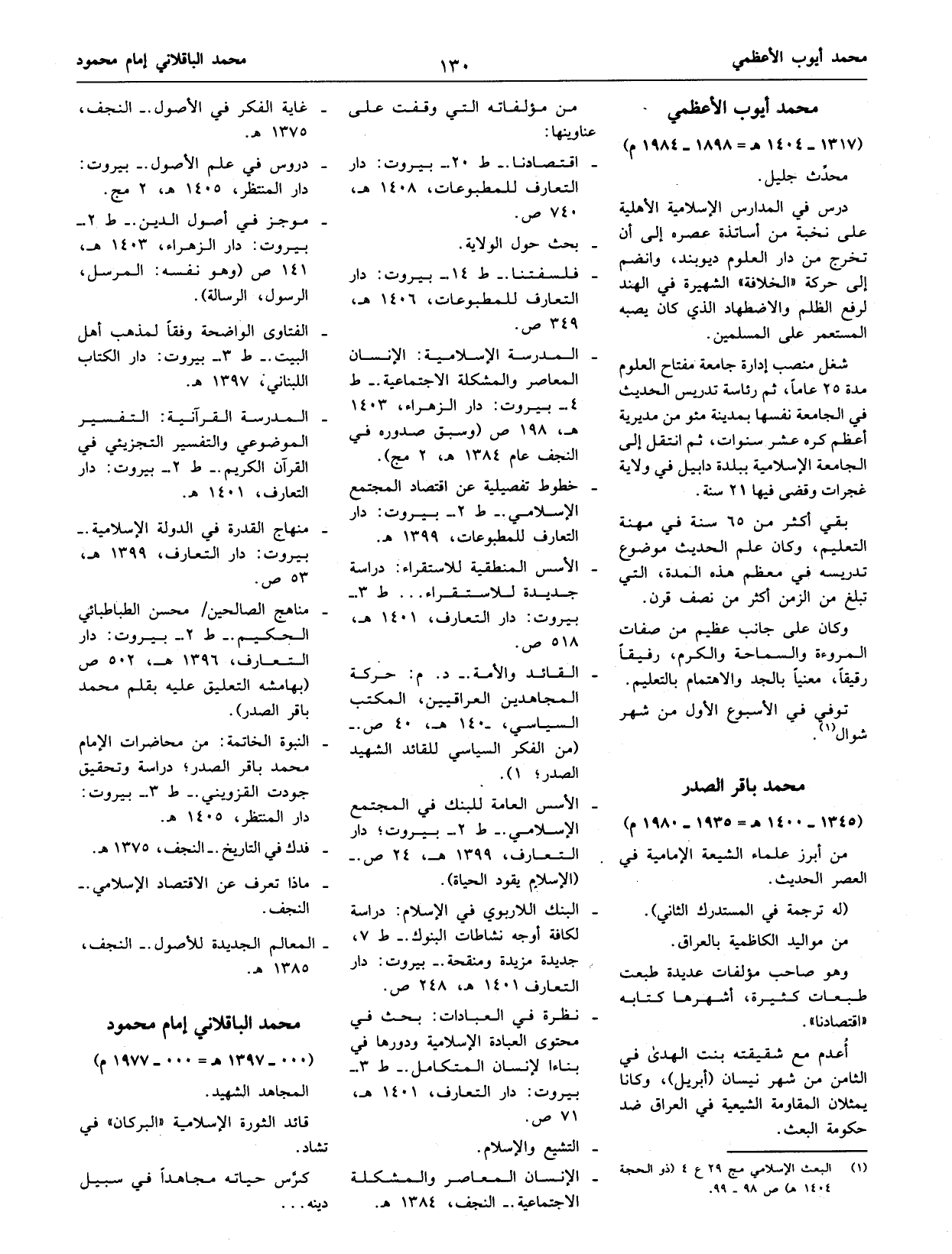 (¬1) البعث الإسلامي مج 29 ع 4 (ذو الحجة 1404 هـ) ص 98 - 99.