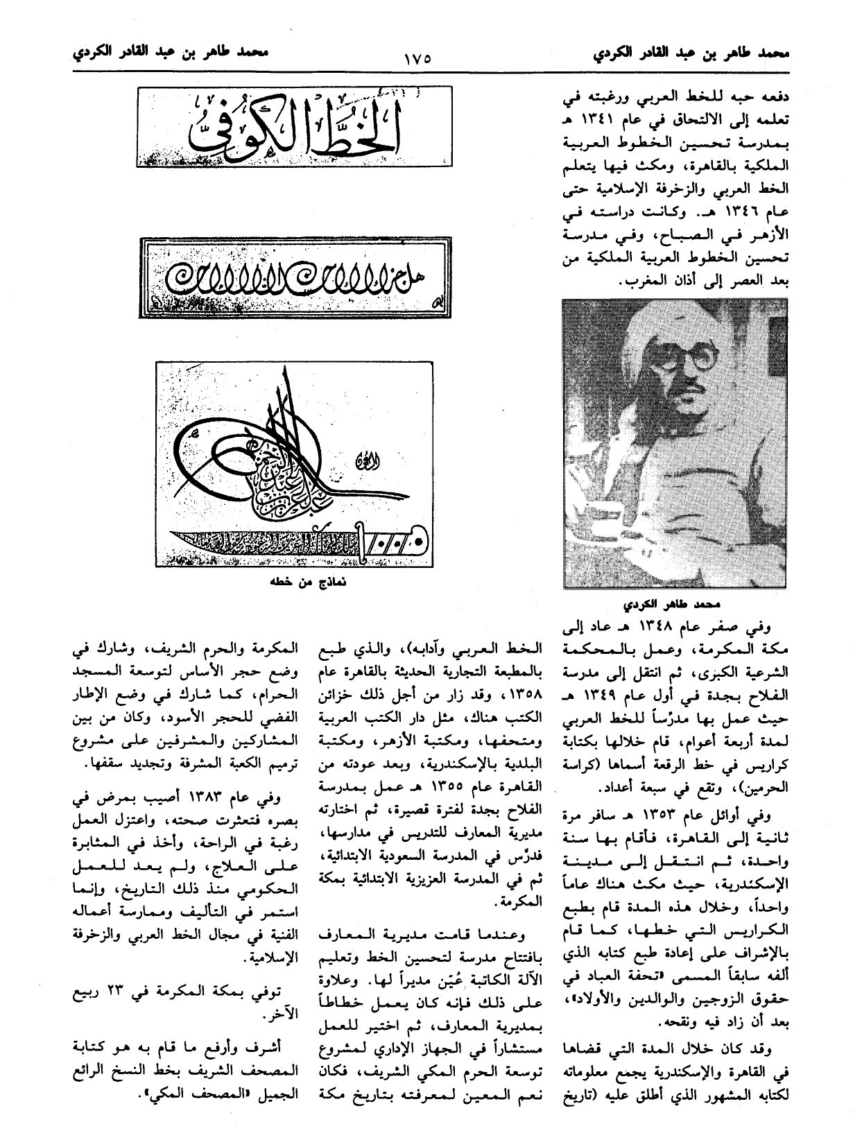الخط العربي وآدابه)، والذي طبع بالمطبعة التجارية الحديثة بالقاهرة عام 1358، وقد زار من أجل ذلك خزائن الكتب هناك، مثل دار الكتب العربية ومتحفها، ومكتبة الأزهر، ومكتبة البلدية بالإسكندرية، وبعد عودته من القاهرة عام 1355 هـ عمل بمدرسة الفلاح بجدة لفترة قصيرة، ثم اختارته مديرية المعارف للتدريس في مدارسها، فدرّس في المدرسة السعودية الابتدائية، ثم في المدرسة العزيزية الابتدائية بمكة المكرمة.