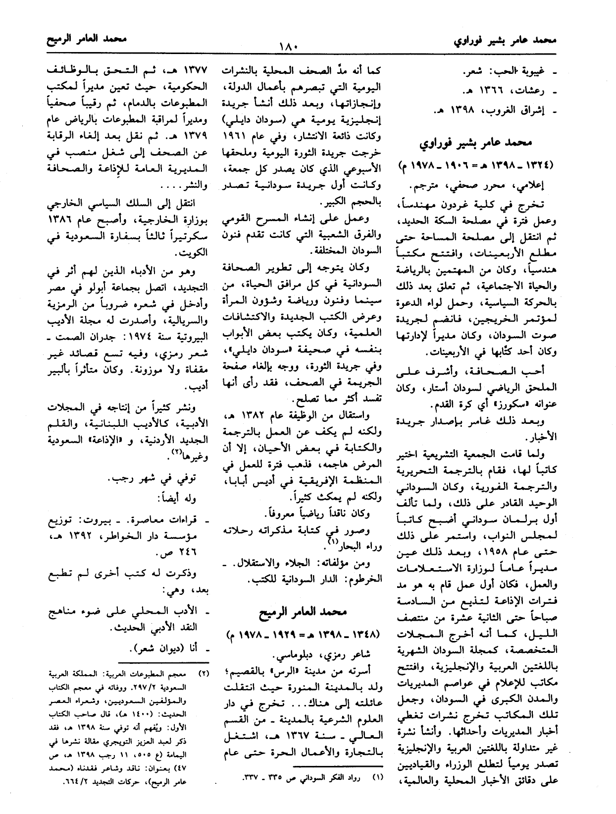 (¬2) معجم المطبوعات العربية: المملكة العربية السعودية 2/ 297. ووفاته في معجم الكتاب والمؤلفين السعوديين، وشعراء العصر الحديث: (1400 هـ)، قال صاحب الكتاب الأول: ويفهم أنه توفي سنة 1398 هـ، فقد ذكر لعبد العزيز التويجري مقالة نشرها في اليمامة (ع 505، 11 رجب 1398 هـ، ص 47) بعنوان: ناقد وشاعر فقدناه (محمد عامر الرميح)، حركات التجديد 2/ 664.