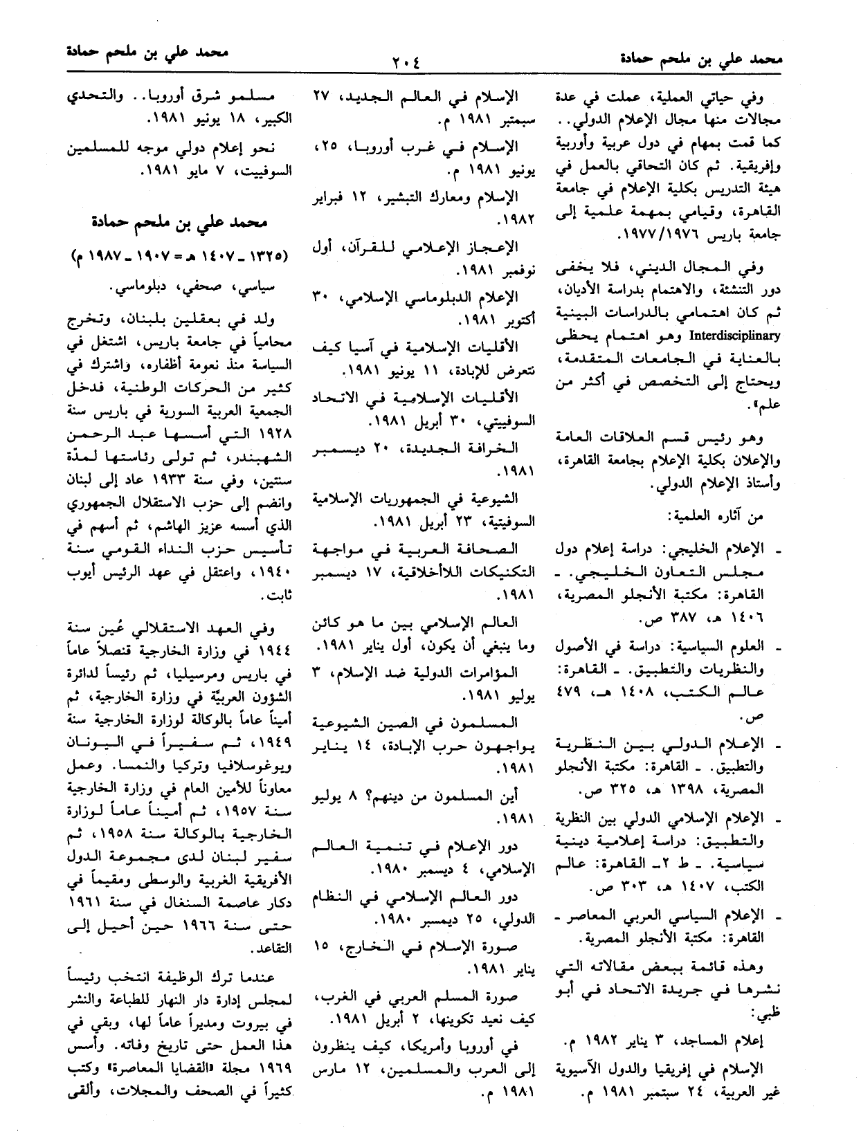 العالم الإسلامي بين ما هو كائن وما ينبغي أن يكون، أول يناير 1981.