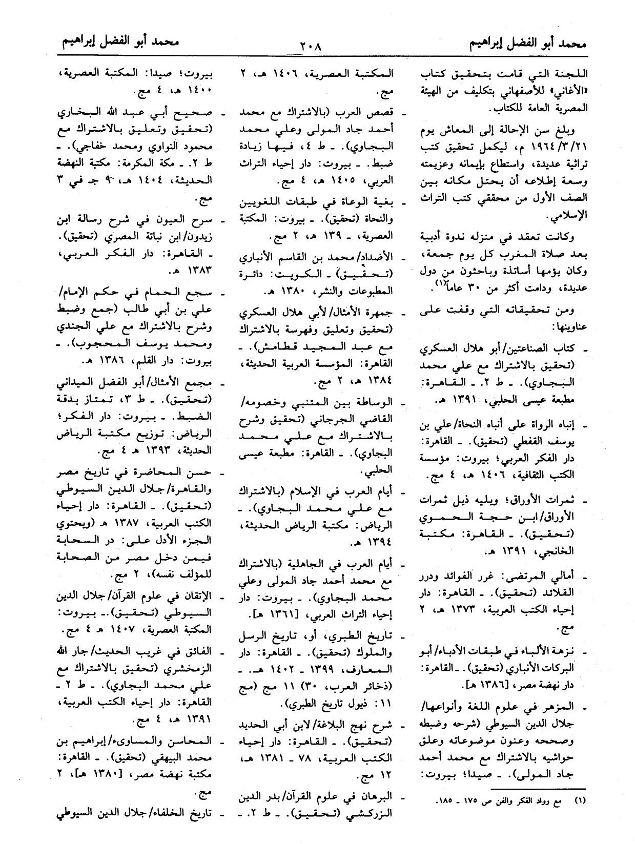 - قصص العرب (بالاشتراك مع محمد أحمد جاد المولى وعلي محمد البجاوي).- ط 4، فيها زيادة ضبط.- بيروت: دار إحياء التراث العربي، 1405 هـ، 4 مج.