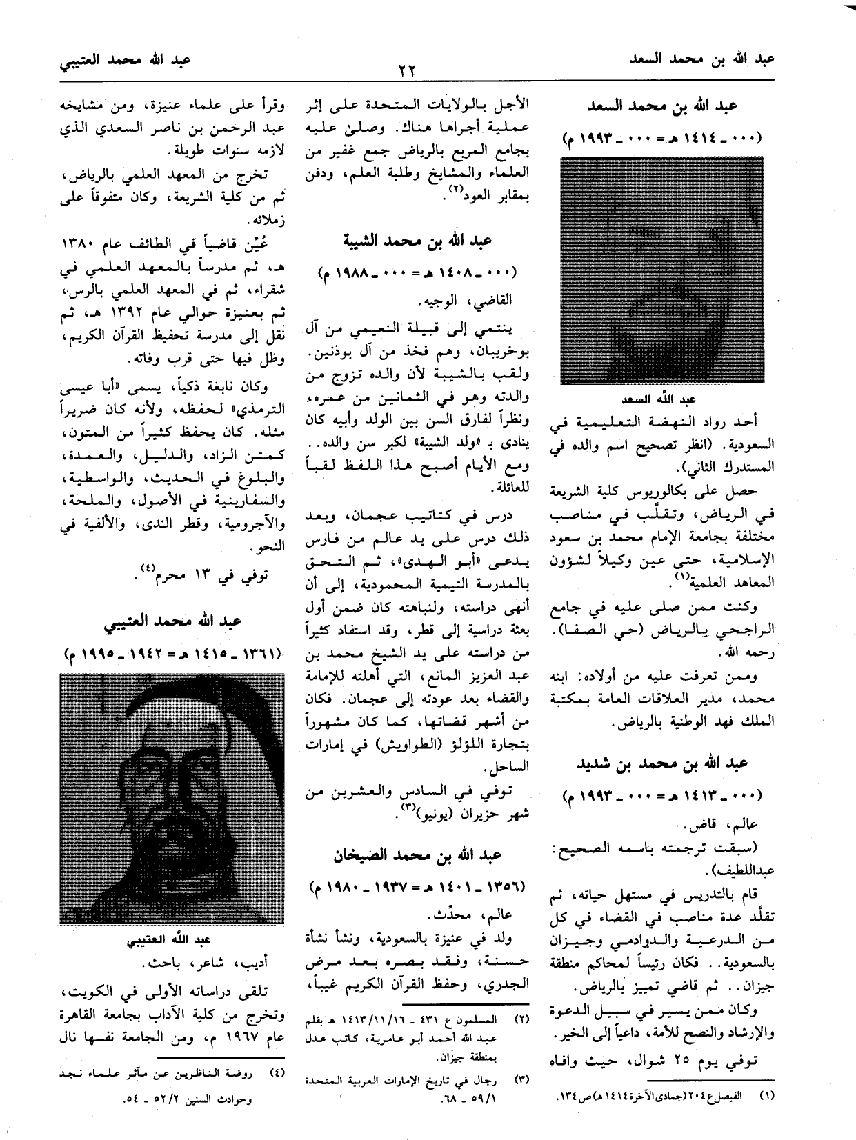 (¬2) المسلمون ع 431 - 16/ 11/ 1413 هـ بقلم عبد الله أحمد أبو عامرية، كاتب عدل بمنطقة جيزان.