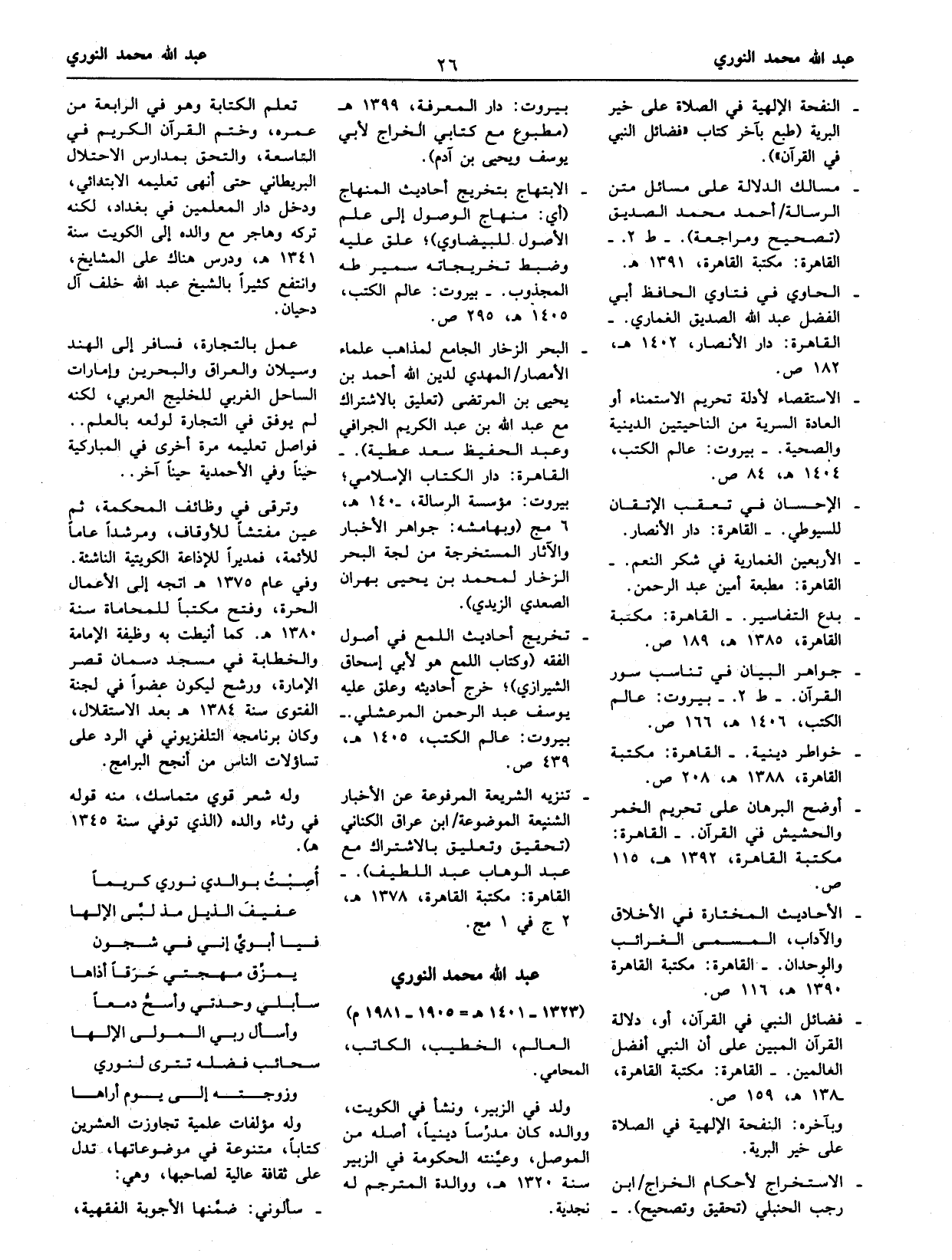 عبد الله محمد النوري (1323 - 1401 هـ- 1905 - 1981 م)
