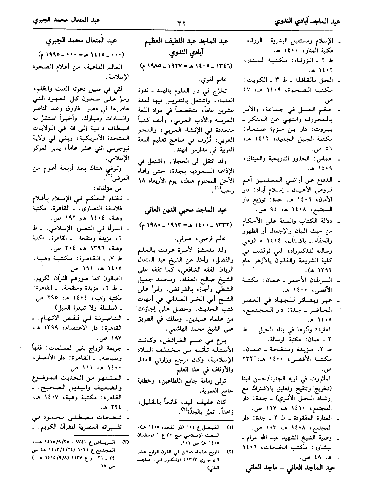 (¬1) الفيصل ع 101 (ذو القعدة 1405 هـ)، البعث الإسلامي مج 30 ع 1 (رمضان 1405 هـ) ص 101.
