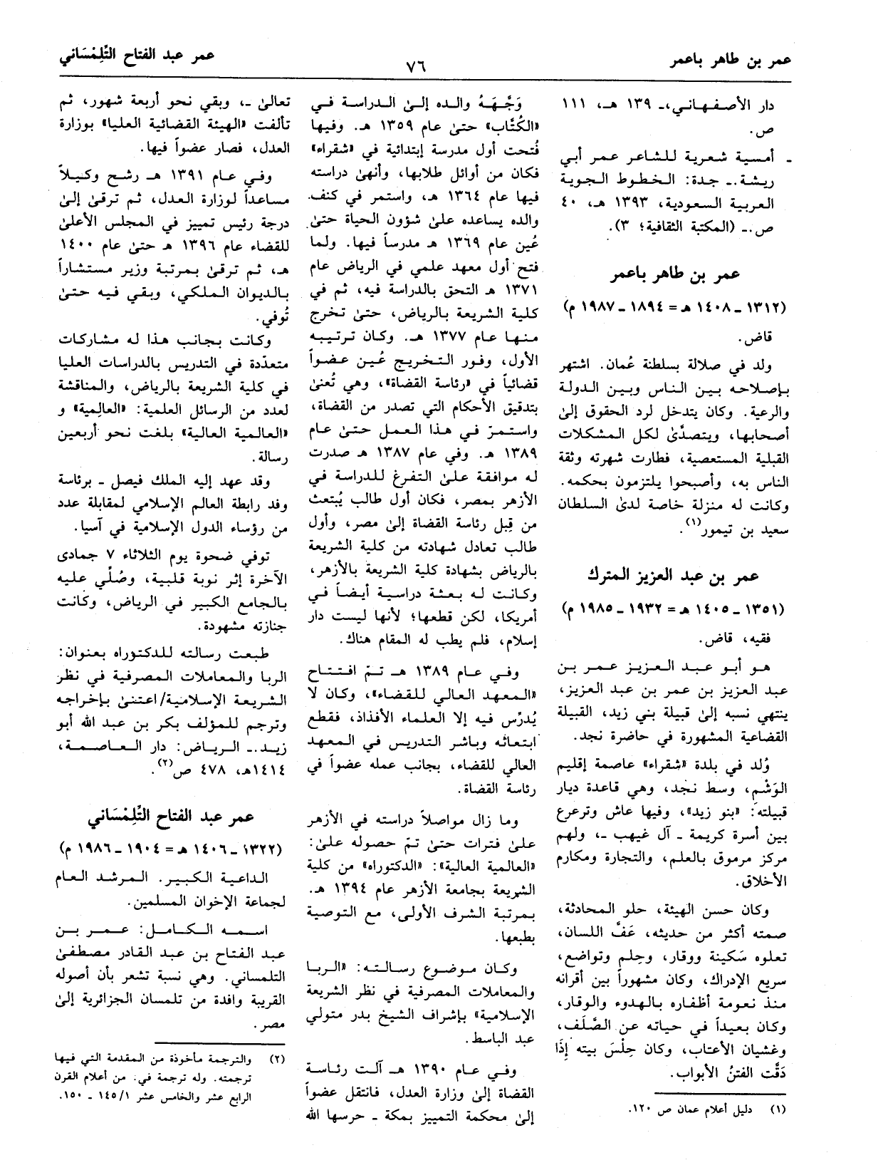 الربا والمعاملات المصرفية في نظر الشريعة الإسلامية/ اعتنى بإخراجه وترجم للمؤلف بكر بن عبد الله أبو زيد.- الرياض: دار العاصمة، 1414 هـ، 478 ص (¬2).