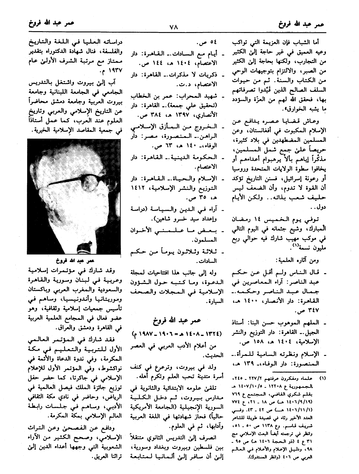 عمر عبد الله فروخ (1324 - 1408 هـ- 1906 - 1987 م)