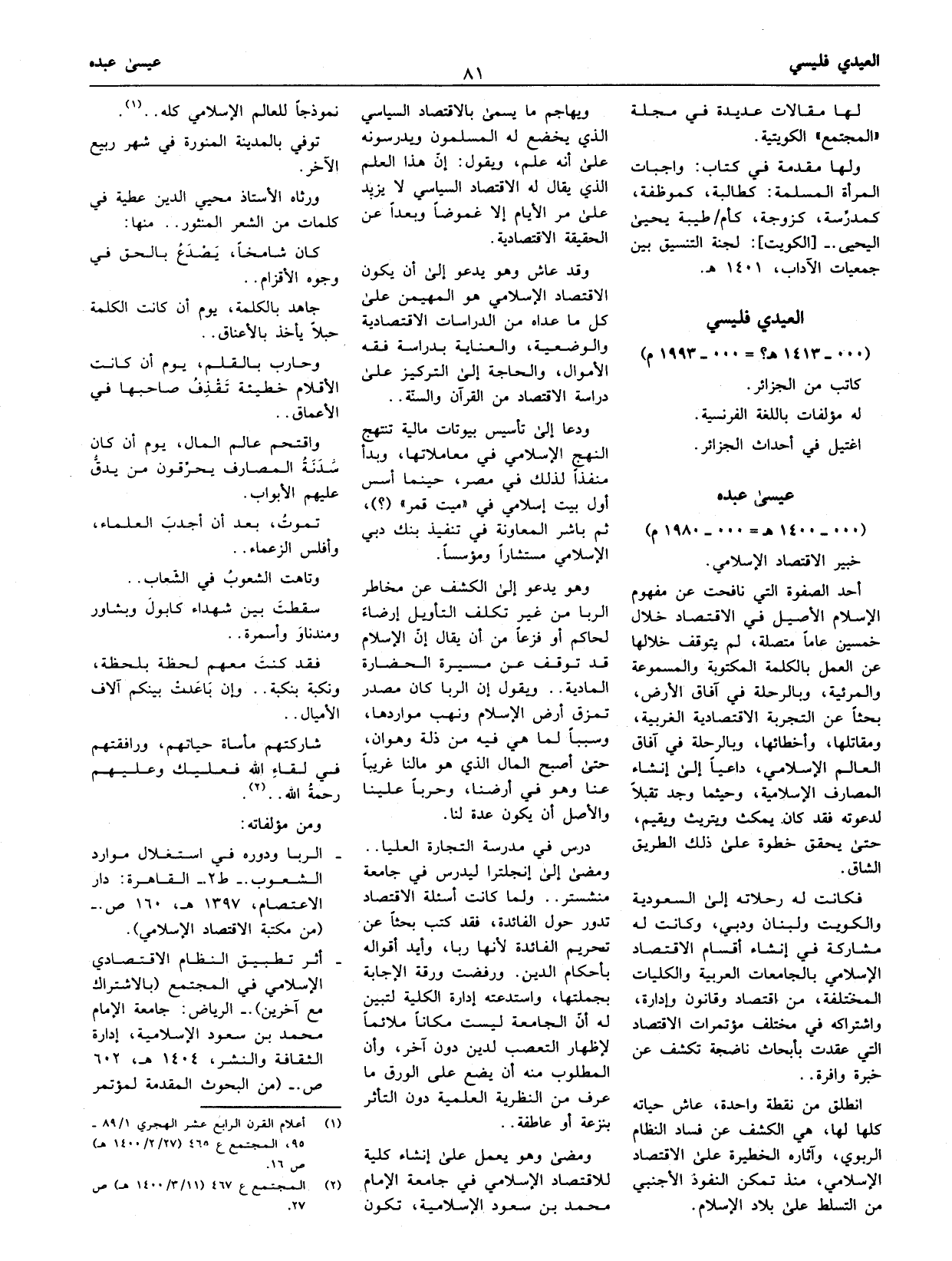 (¬2) المجتمع ع 467 (11/ 3/ 1400 هـ) ص 27.