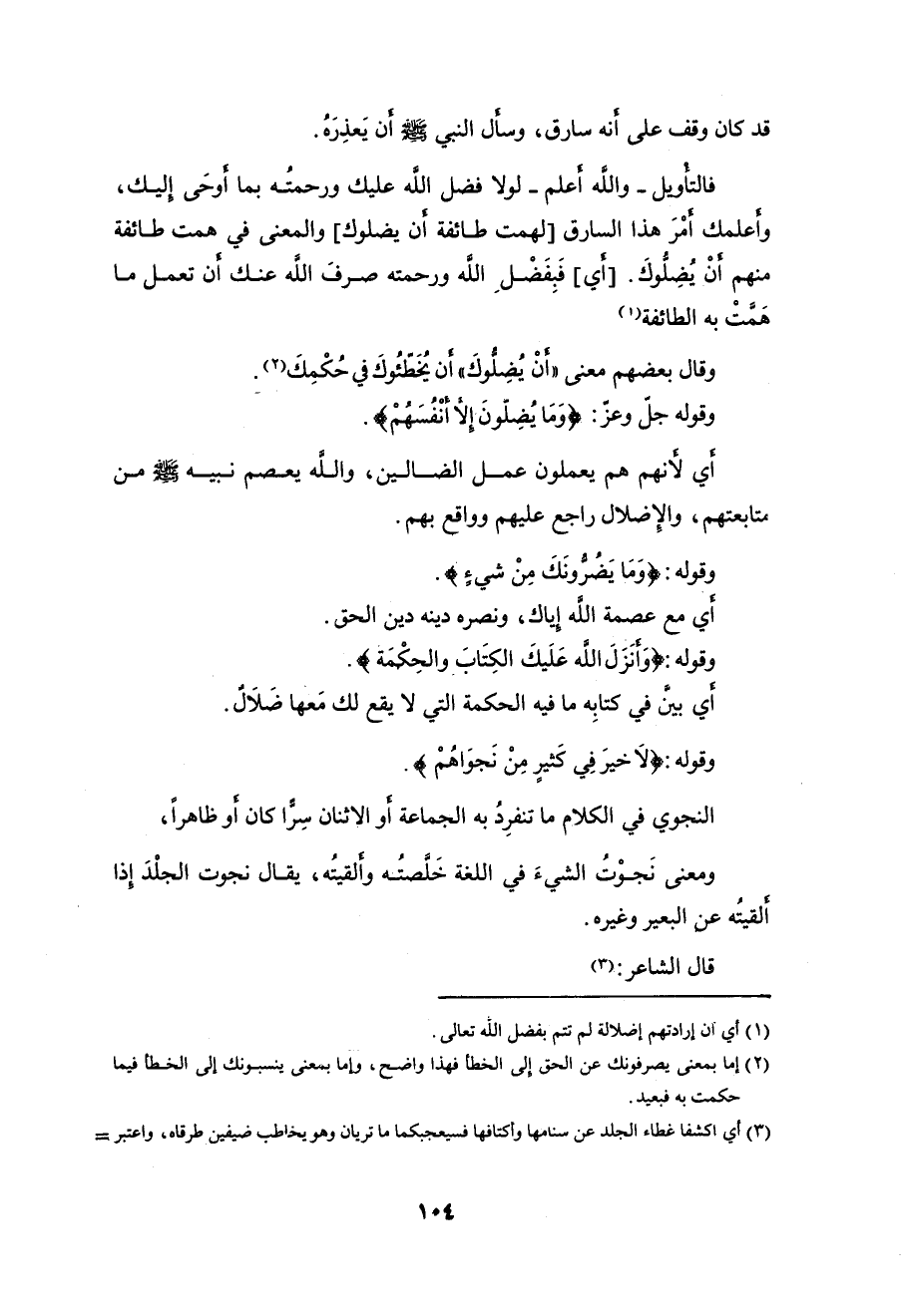 وأعلمك أمْرَ هذا السارق لهمَّت طائفة أن يضلوك، والمعنى في همَّت طائفة