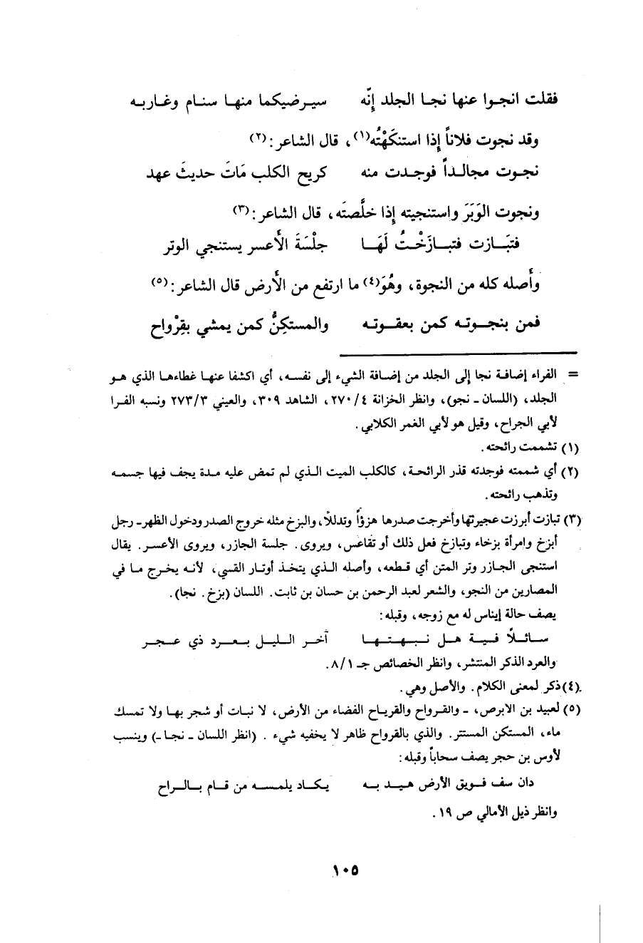 فقلت انْجُوَا عنها نَجا الجِلْدِ إِنه سَيُرْضِيكما منها سَنامٌ وغارِبُهْ