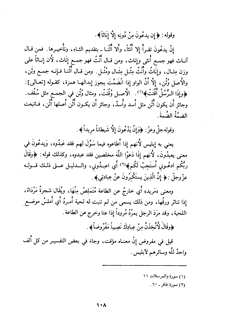 وقوله جلَّ وعزَّ: (وَإِنْ يَدْعُونَ إِلَّا شَيْطَانًا مَرِيدًا).