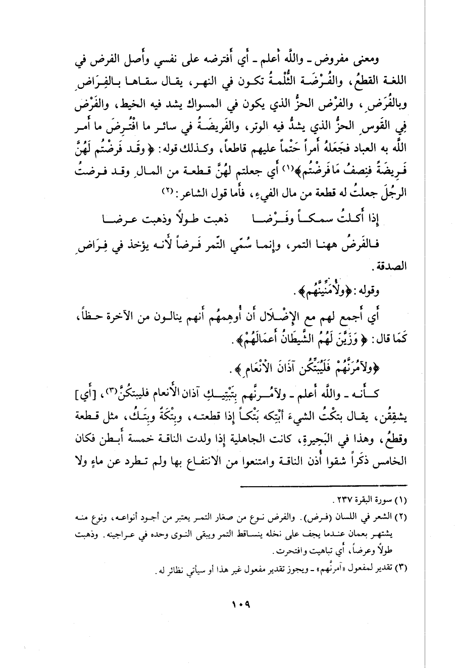 ومعنى مفروض - واللَّه أعلم - أي أفترضه على نفسي وأصل الفرض في