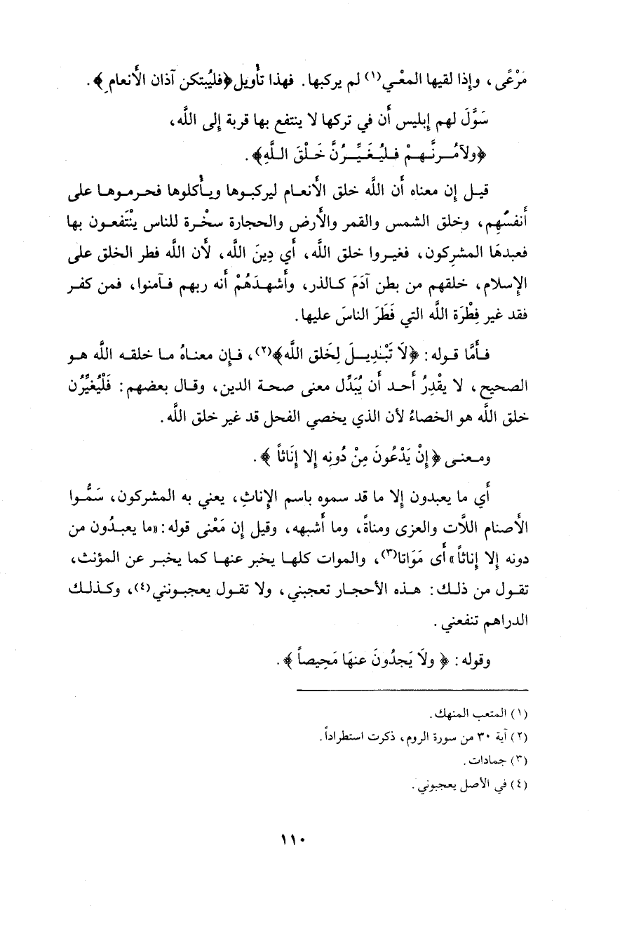 فأمَّا قوله: (لاَ تَبديلَ لِخَلق الله)، فإنَّ معناهُ ما خلقه الله هو