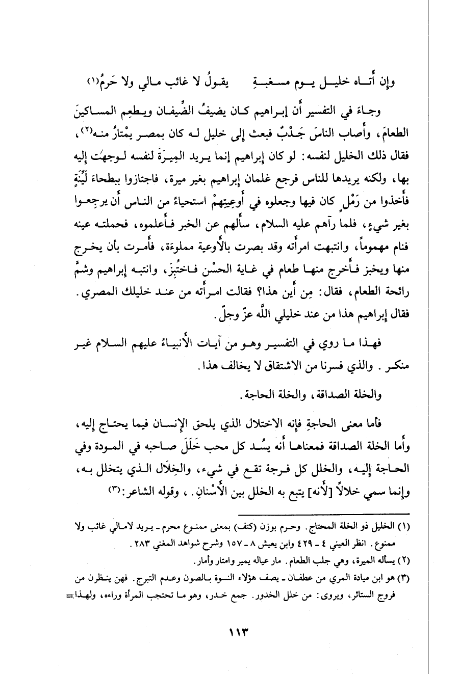 وجاءَ في التفسير أن إبراهيم كان يضيفُ الضَيفان ويطعِم المساكينَ