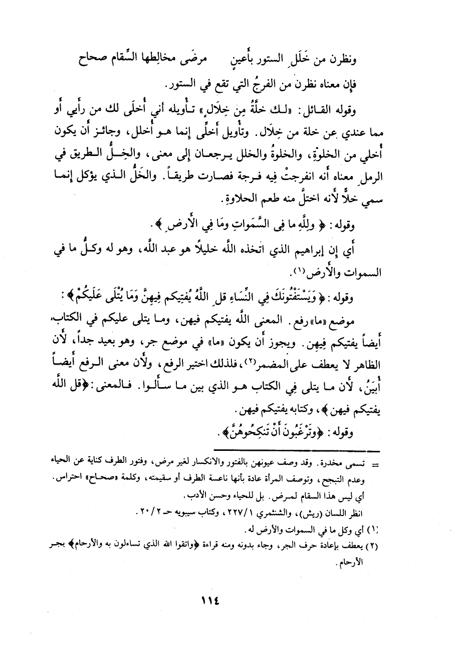 أيضاً يفتيكم فِيهِن. ويجوز أن يكون " ما " في موضع جر، وهو بعيد جدا، لأن الظاهر لا يعطف على المضمر، فلذلك اختير الرفع، ولأن معنى الرفع أيضاً أبيَنُ، لأن ما يتلى فِي الكتاب هو الذي بين ما سألوا.