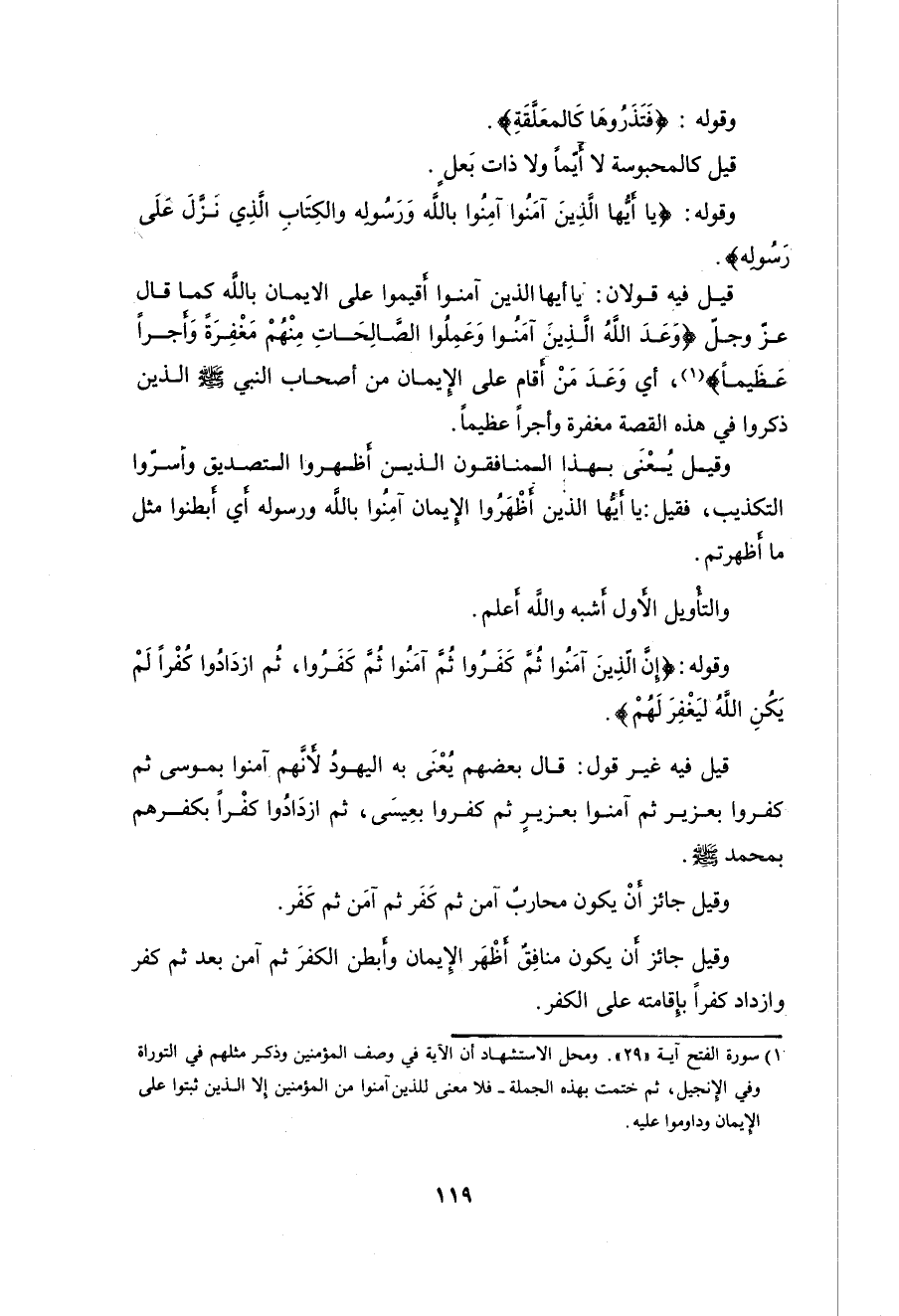 وقوله: (يَا أَيُّهَا الَّذِينَ آمَنُوا آمِنُوا بِاللَّهِ وَرَسُولِهِ وَالْكِتَابِ الَّذِي نَزَّلَ عَلَى رَسُولِهِ وَالْكِتَابِ الَّذِي أَنْزَلَ مِنْ قَبْلُ وَمَنْ يَكْفُرْ بِاللَّهِ وَمَلَائِكَتِهِ وَكُتُبِهِ وَرُسُلِهِ وَالْيَوْمِ الْآخِرِ فَقَدْ ضَلَّ ضَلَالًا بَعِيدًا (136)