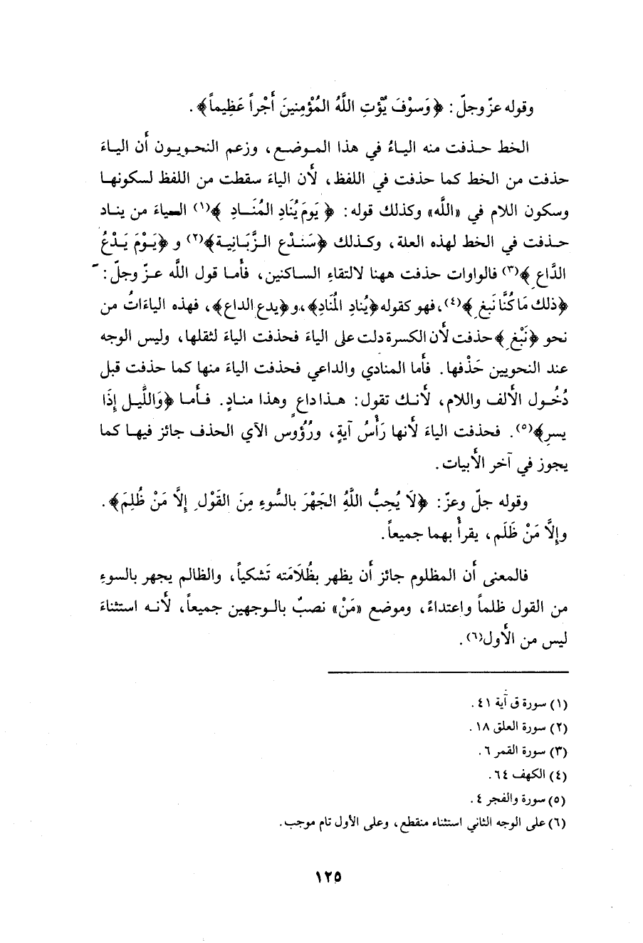 و (يَوْمَ يَدْعُ الدَّاعِ) فالواوات حذفت ههنا لالتقاءِ السَّاكنين، فأما قول الله عزَّ وجلَّ: - (ذلك مَا كُنَّا نَبغِ)، فهو كقوله (يُنَادِ المُنَا).