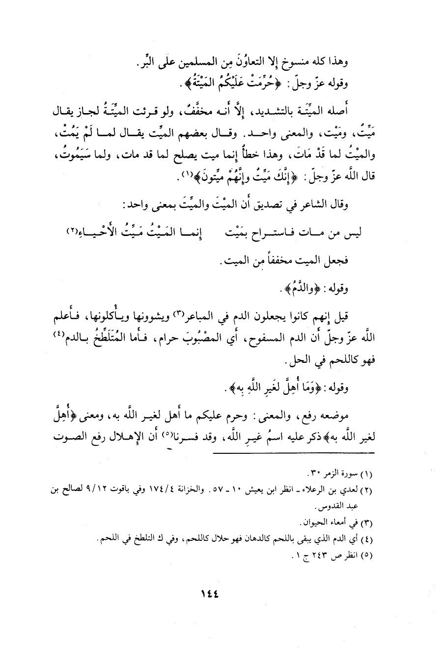 (حُرِّمَتْ عَلَيْكُمُ الْمَيْتَةُ).