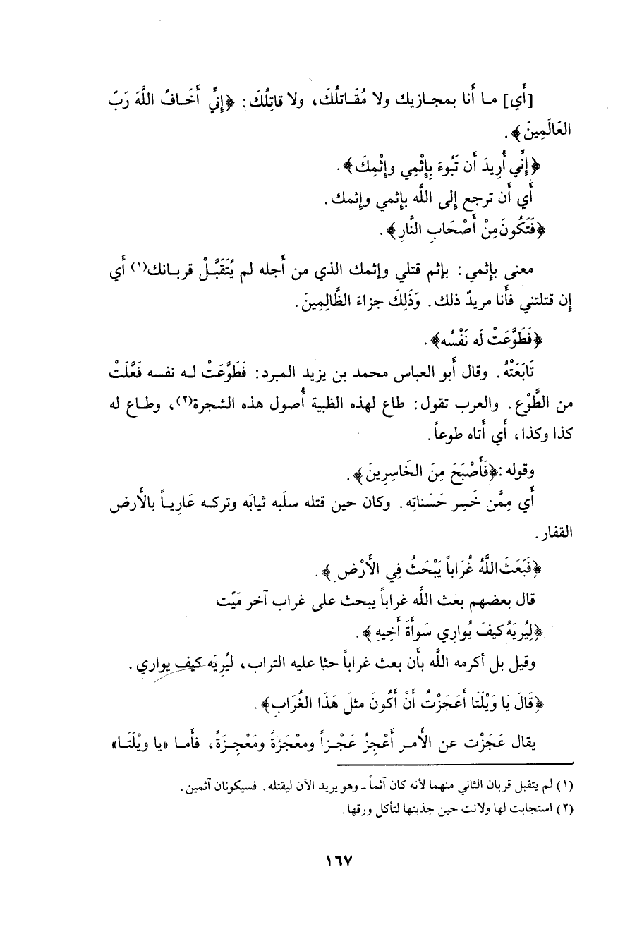 (فَطَوَّعَتْ لَهُ نَفْسُهُ قَتْلَ أَخِيهِ فَقَتَلَهُ فَأَصْبَحَ مِنَ الْخَاسِرِينَ (30)