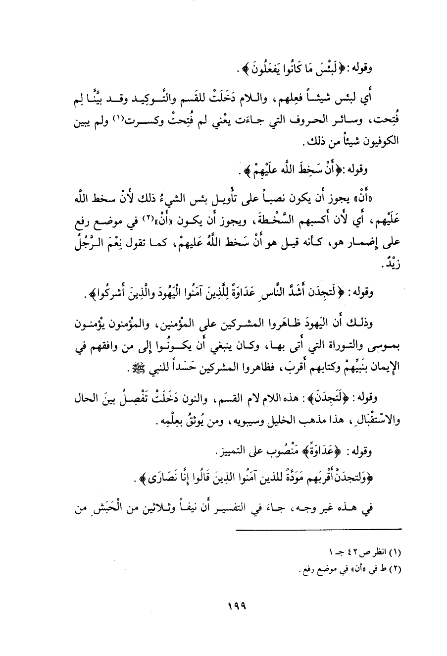 وقوله: (لَتَجِدَنَّ أَشَدَّ النَّاسِ عَدَاوَةً لِلَّذِينَ آمَنُوا الْيَهُودَ وَالَّذِينَ أَشْرَكُوا وَلَتَجِدَنَّ أَقْرَبَهُمْ مَوَدَّةً لِلَّذِينَ آمَنُوا الَّذِينَ قَالُوا إِنَّا نَصَارَى ذَلِكَ بِأَنَّ مِنْهُمْ قِسِّيسِينَ وَرُهْبَانًا وَأَنَّهُمْ لَا يَسْتَكْبِرُونَ (82)