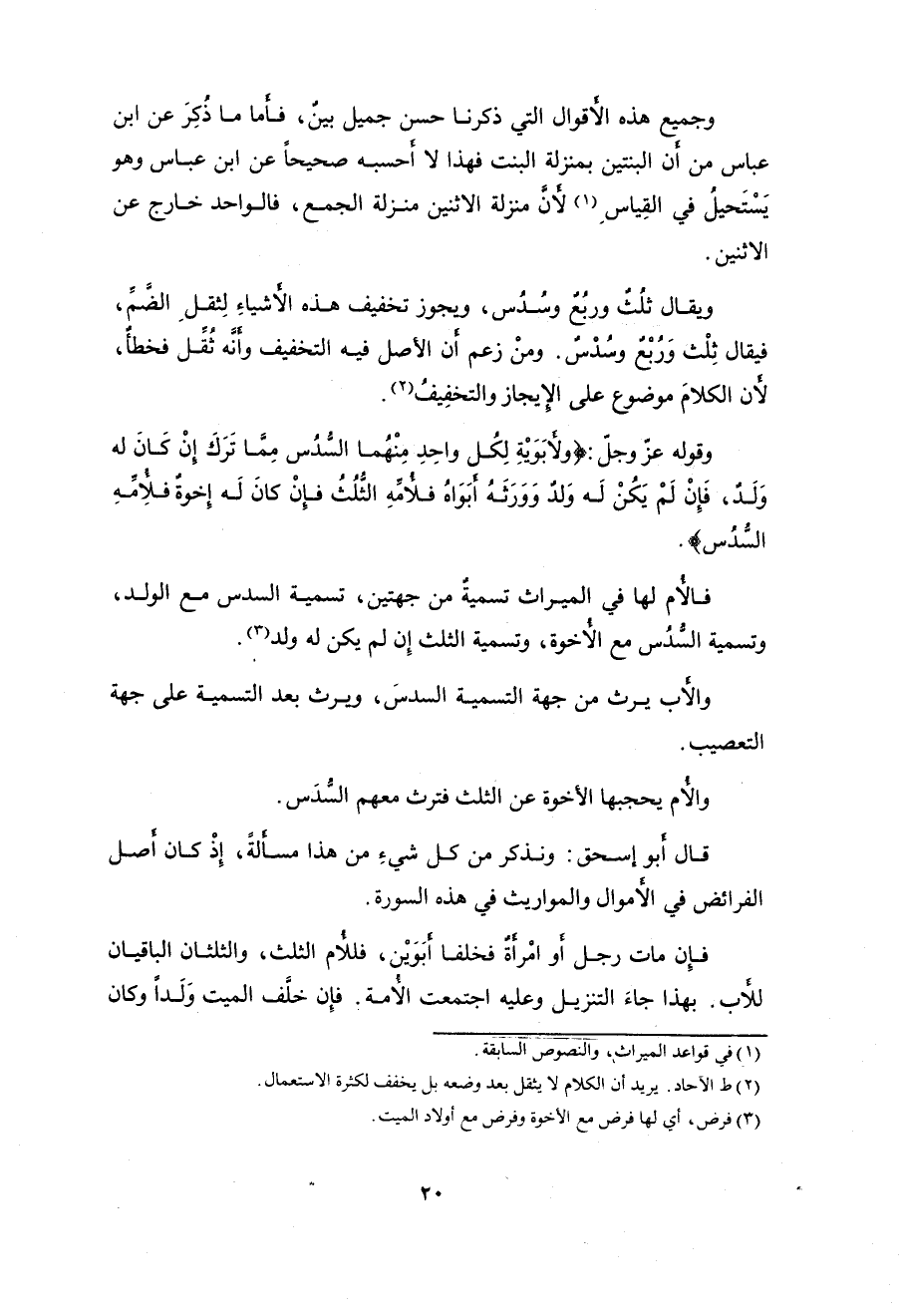 وقوله عزَّ وجلَّ: (وَلِأَبَوَيْهِ لِكُلِّ وَاحِدٍ مِنْهُمَا السُّدُسُ مِمَّا تَرَكَ إِنْ كَانَ لَهُ وَلَدٌ فَإِنْ لَمْ يَكُنْ لَهُ وَلَدٌ وَوَرِثَهُ أَبَوَاهُ فَلِأُمِّهِ الثُّلُثُ فَإِنْ كَانَ لَهُ إِخْوَةٌ فَلِأُمِّهِ السُّدُسُ).
