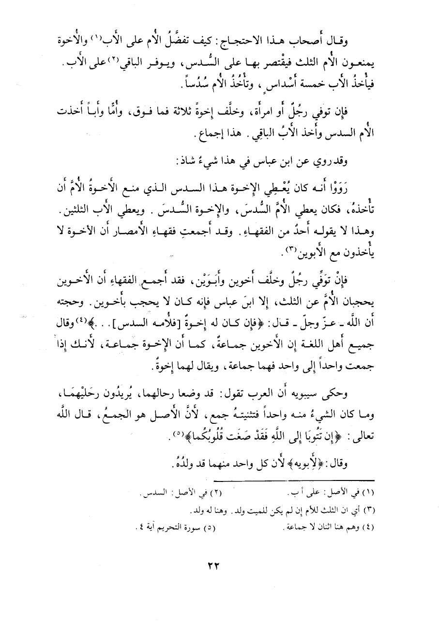 وحجته أن اللَّه - عزَّ وجلَّ - قال: (فَإِنْ كَانَ لَهُ إِخْوَةٌ فَلِأُمِّهِ السُّدُسُ)