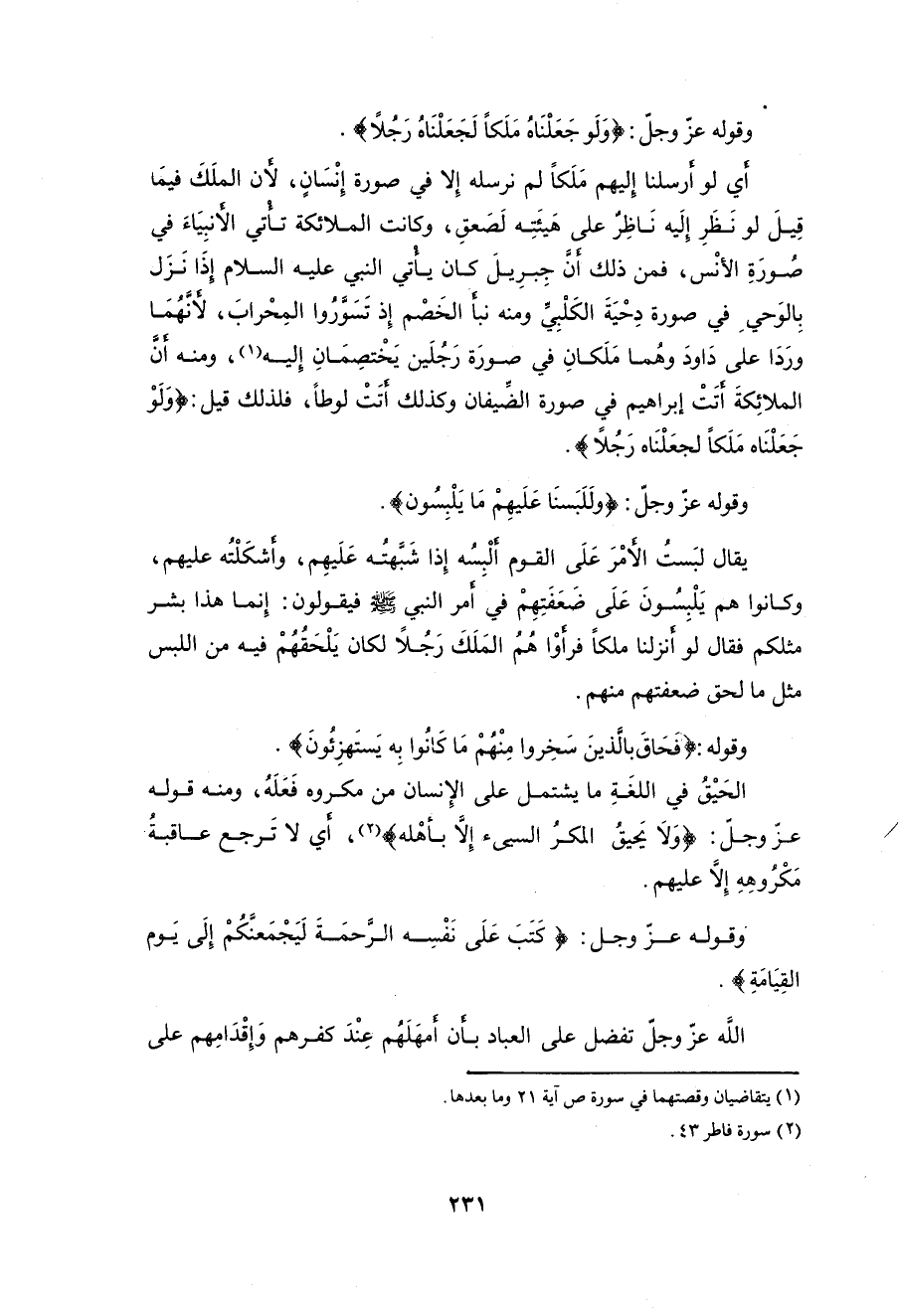 ومنه أنَّ الملائِكةَ أتتْ إبراهيم في صورة الضِّيفان وكذلك أتتْ لوطاً، فلذلك قيل: (وَلَوْ جَعَلْنَاهُ مَلَكًا لَجَعَلْنَاهُ رَجُلًا).
