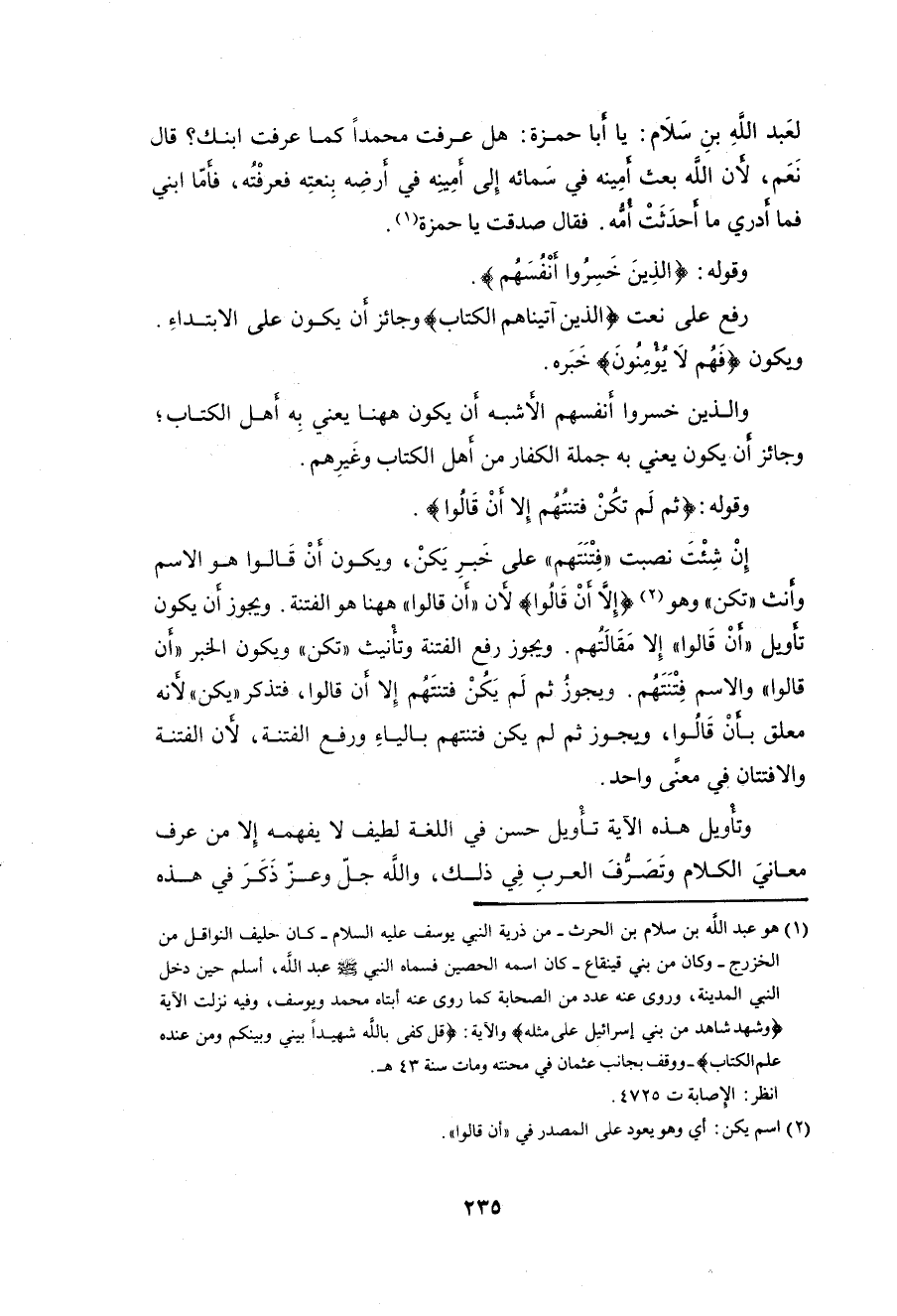 معلق ب (أَنْ قَالُوا)، ويجوز ثم لم يكن فتنتهم بالياءِ ورفع الفتنة، لأن الفتنة