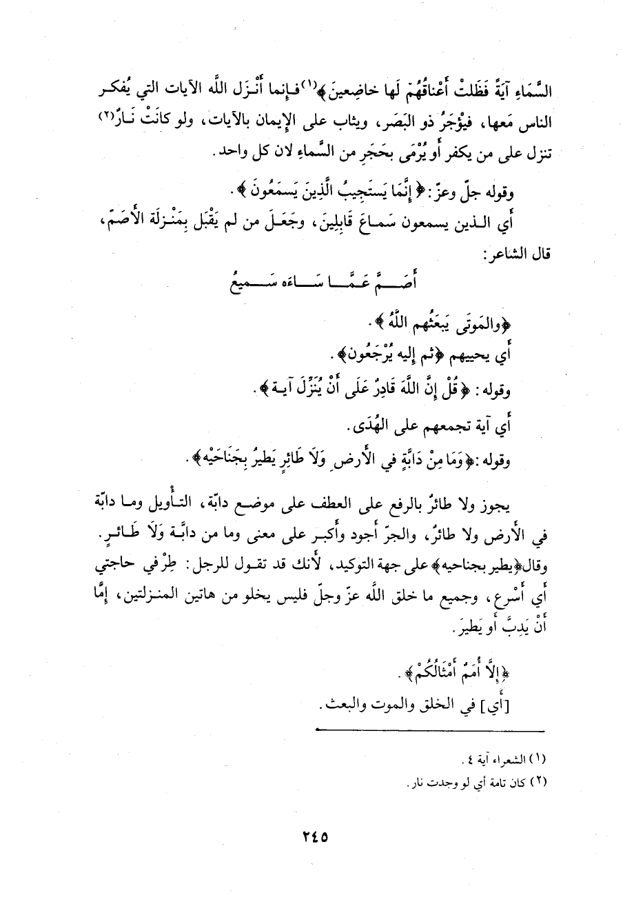 وقوله: (وَمَا مِنْ دَابَّةٍ فِي الْأَرْضِ وَلَا طَائِرٍ يَطِيرُ بِجَنَاحَيْهِ إِلَّا أُمَمٌ أَمْثَالُكُمْ مَا فَرَّطْنَا فِي الْكِتَابِ مِنْ شَيْءٍ ثُمَّ إِلَى رَبِّهِمْ يُحْشَرُونَ (38)