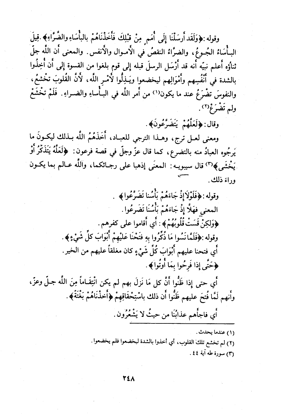 وقوله: (وَلَقَدْ أَرْسَلْنَا إِلَى أُمَمٍ مِنْ قَبْلِكَ فَأَخَذْنَاهُمْ بِالْبَأْسَاءِ وَالضَّرَّاءِ لَعَلَّهُمْ يَتَضَرَّعُونَ (42)