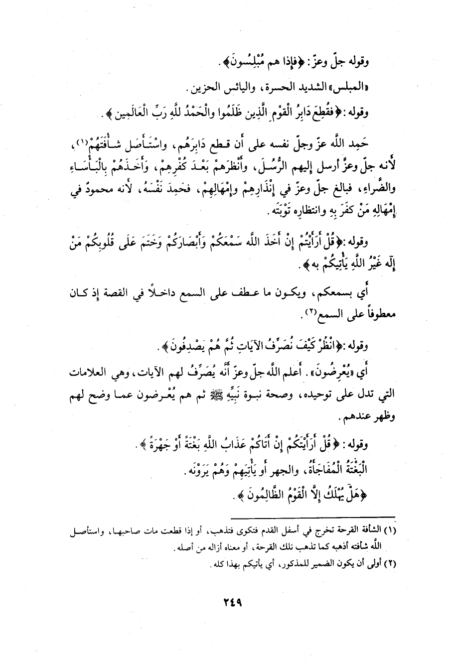 وقوله: (فَقُطِعَ دَابِرُ الْقَوْمِ الَّذِينَ ظَلَمُوا وَالْحَمْدُ لِلَّهِ رَبِّ الْعَالَمِينَ (45)