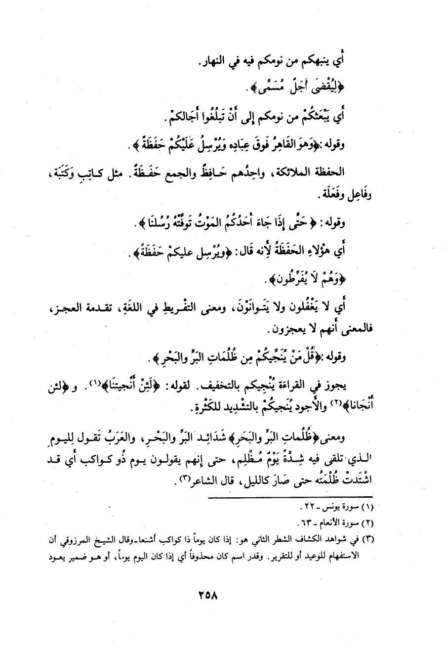 ومعنى (ظُلُماتِ البَر والبَحَرِ) شَدَائِد البَر والبَحْرِ، والعَرَبُ تَقول لِليومِ